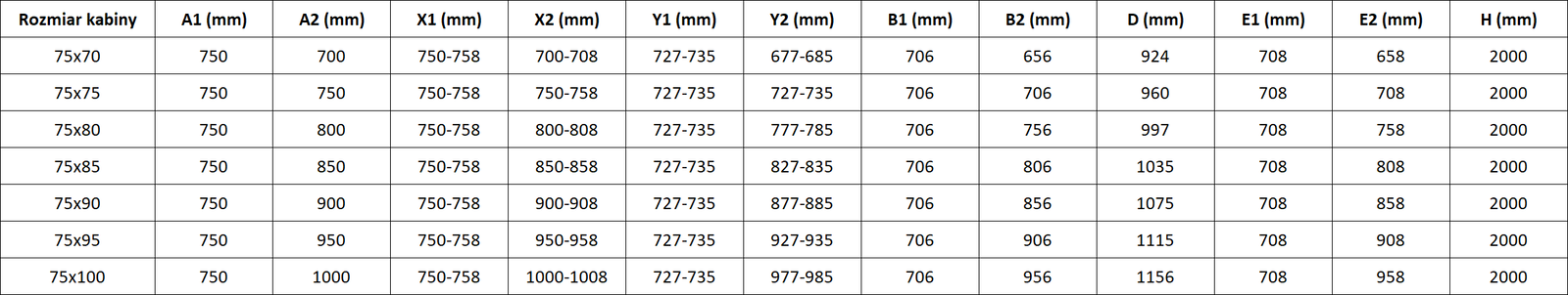 Dušo kabinos, durys ir sienelės yra standartiškai pritaikytos montuoti ant nustatytų matmenų dušo padėklų. Būtent šie matmenys nurodomi gaminio pavadinime arba aprašyme. Tačiau atkreipkite dėmesį, kad faktiniai elementų matmenys gali šiek tiek skirtis nuo vardinių verčių. Planuojant montuoti tiesiai ant grindų, rekomenduojama atidžiai patikrinti išorinius matmenis ir elementų išdėstymą pagal techninį brėžinį.