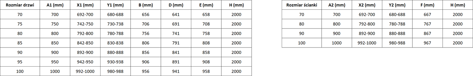 Dydis: 95x90 cm (dešinės durys 95 cm, sienelė 90 cm)