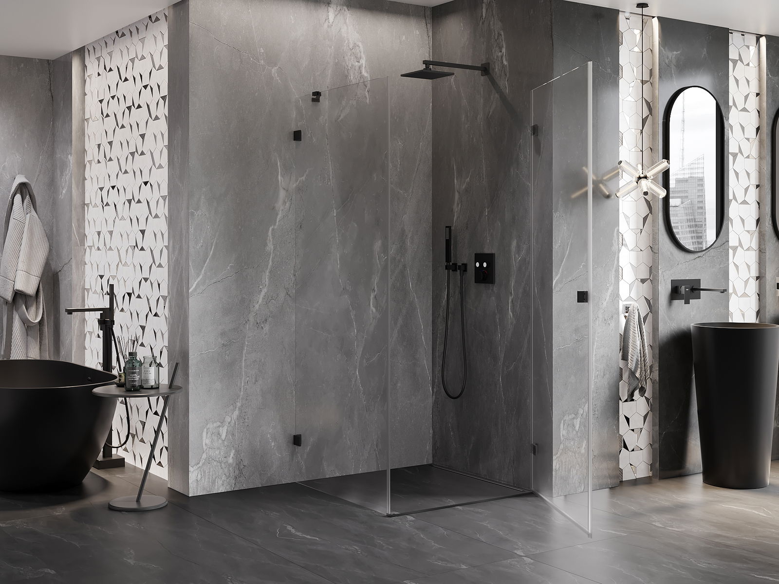Produktą, atsižvelgiant į poreikius, galima sumontuoti tiek ant dušo padėklo, tiek tiesiogiai ant grindų. Universalus montavimo būdas leidžia pritaikyti produktą įvairių tipų vonios kambariams ir erdvės konfigūracijoms.