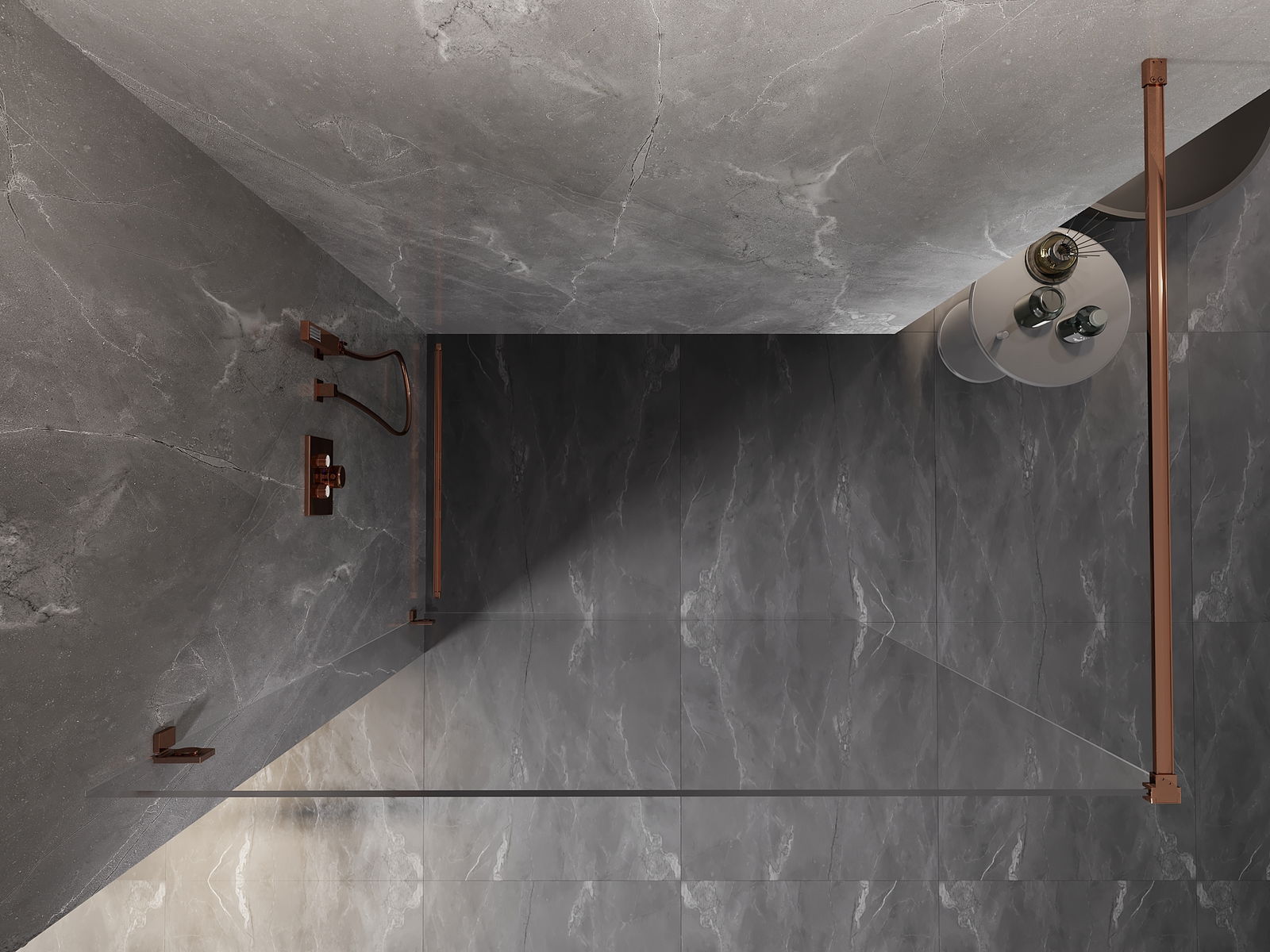 Mexen Lunar dušo siena Walk-in kairė 100 x 200 cm, skaidri 8 mm, rožinis auksas - 830-100-000-60-00-L