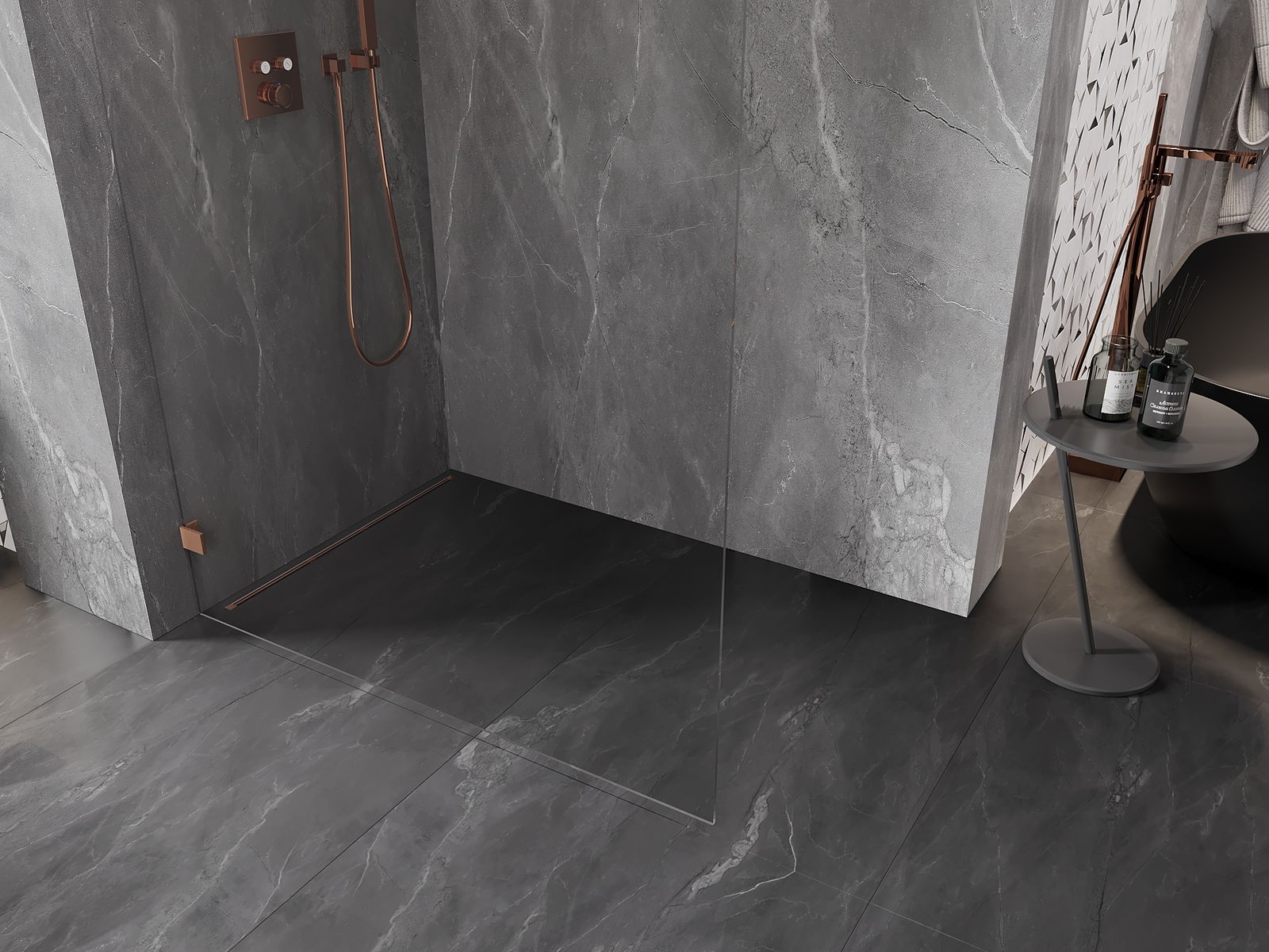 Mexen Lunar dušo siena Walk-in kairė 100 x 200 cm, skaidri 8 mm, šlifuotas varis - 830-100-000-65-00-L