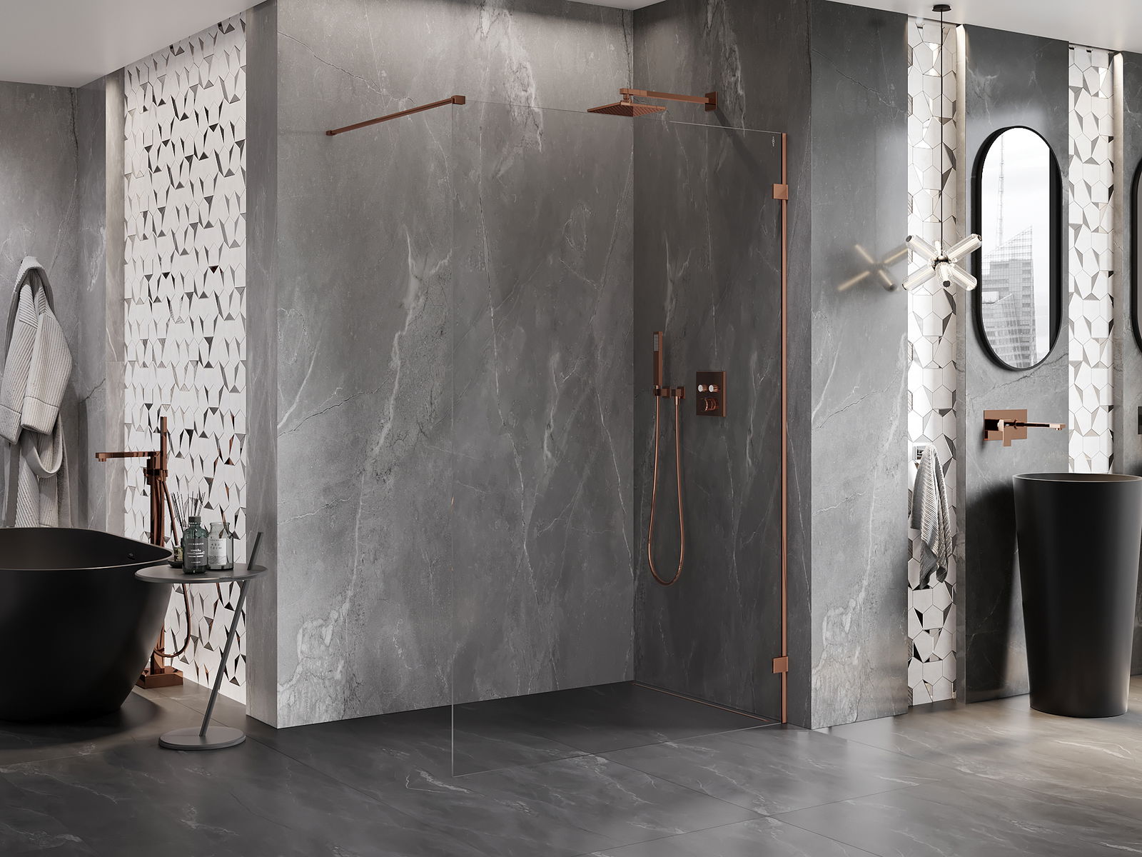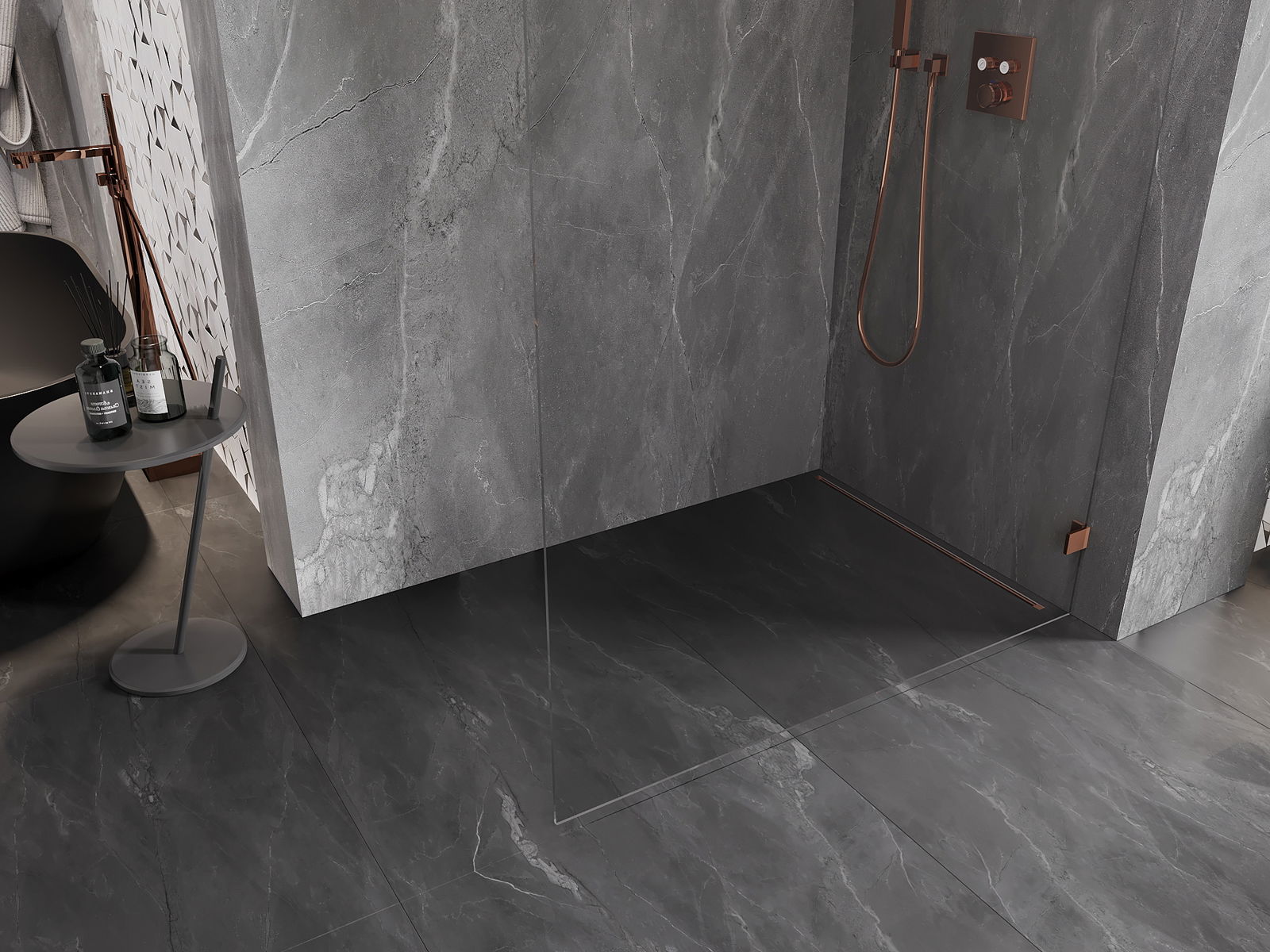 Mexen Lunar dušo sienelė Walk-in dešinė 130 x 200 cm, skaidrus 8 mm, rožinis auksas - 830-130-000-60-00-P