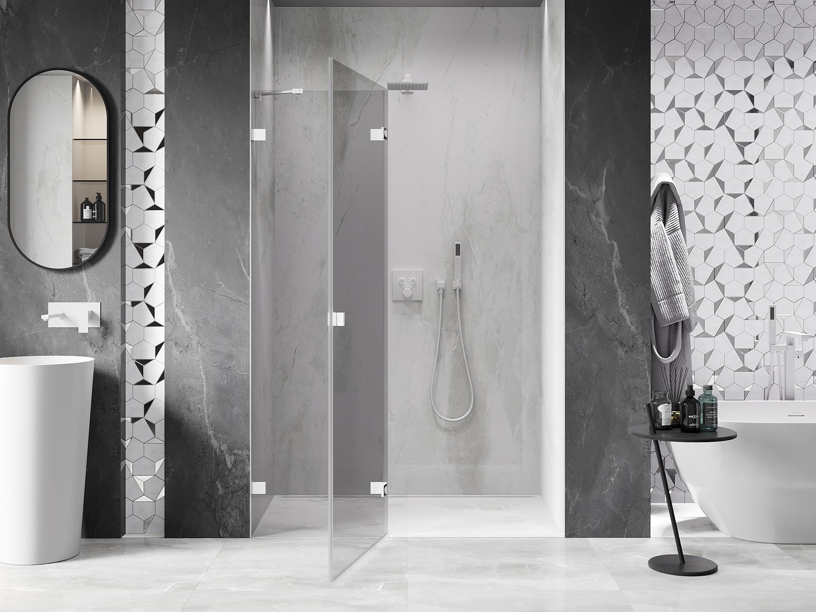 Spaustukai ir vyriai pagaminti iš labai patvaraus žalvario, papildomai sukuriantys lygią stiklo plokštumą. Tai puikus pasirinkimas, jungiantis eleganciją, patvarumą ir šiuolaikinį dizainą. Tokie sprendimai prideda dušo estetikai ir tuo pačiu palengvina švaros palaikymą.