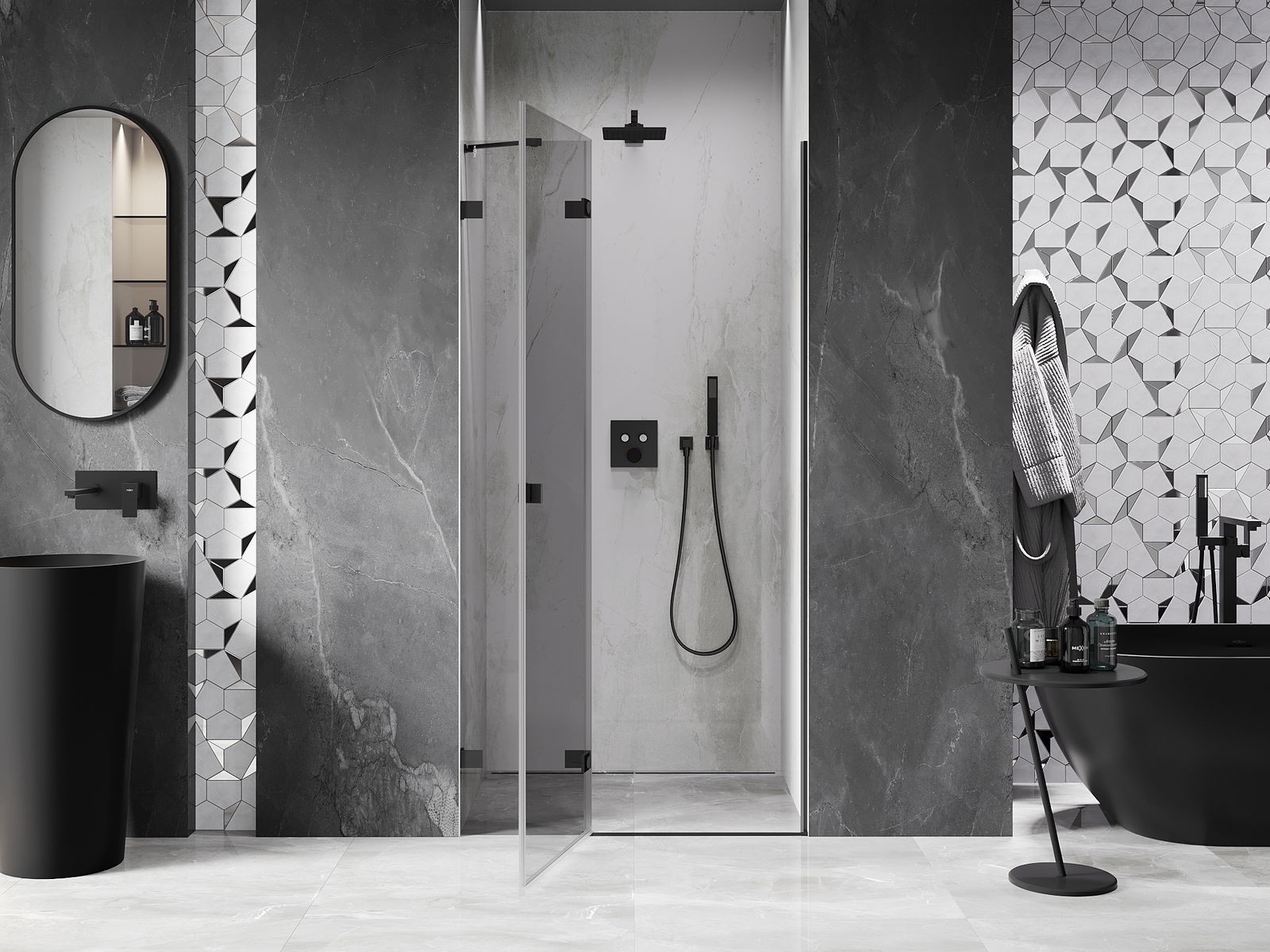 Mexen Lunar dušo durys atveriamos kairės 120 cm, permatomos, juodos - 834-120-000-70-00-L