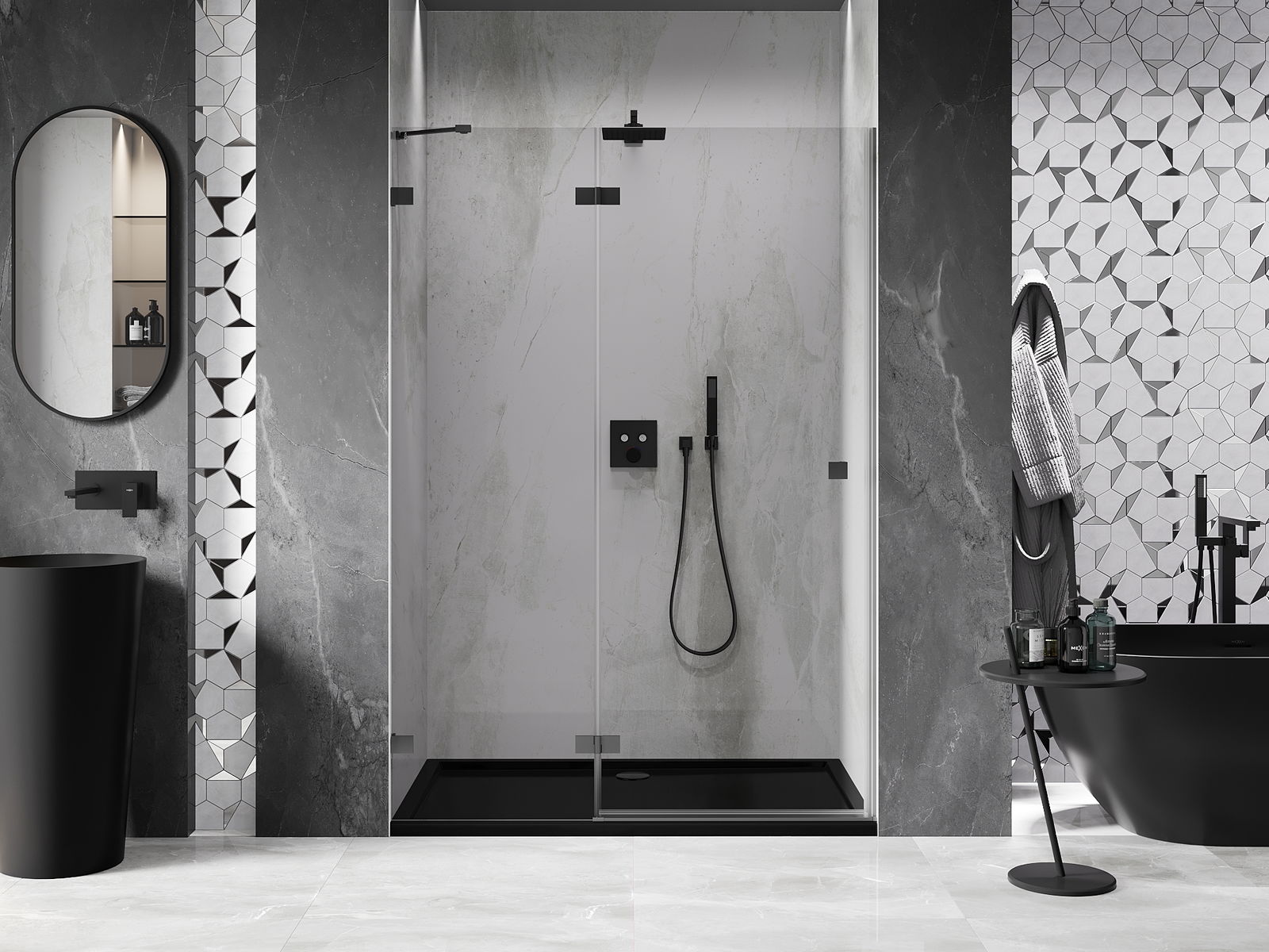 Produktą, atsižvelgiant į poreikius, galima sumontuoti tiek ant dušo padėklo, tiek tiesiogiai ant grindų. Universalus montavimo būdas leidžia pritaikyti produktą įvairių tipų vonios kambariams ir erdvės konfigūracijoms.