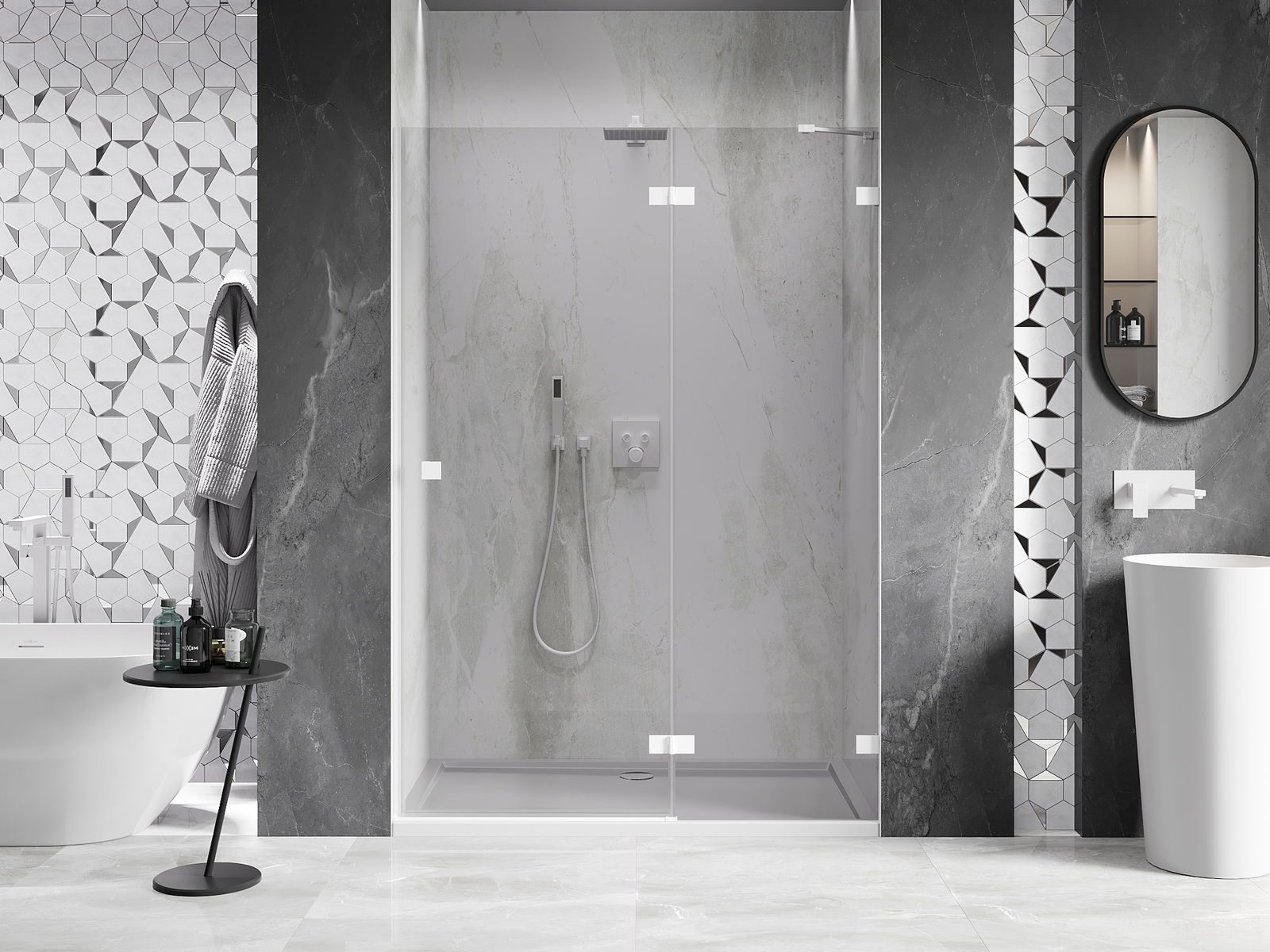 Mexen Lunar dešinės pusės atveriamos dušo durys 135 cm, skaidrios, baltos - 834-135-000-20-00-P