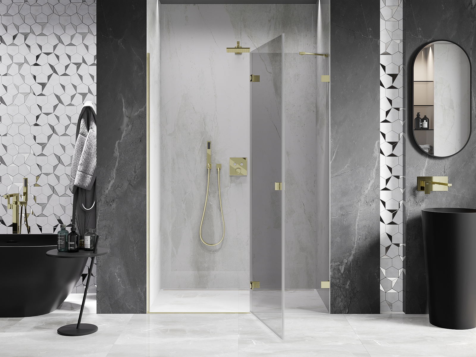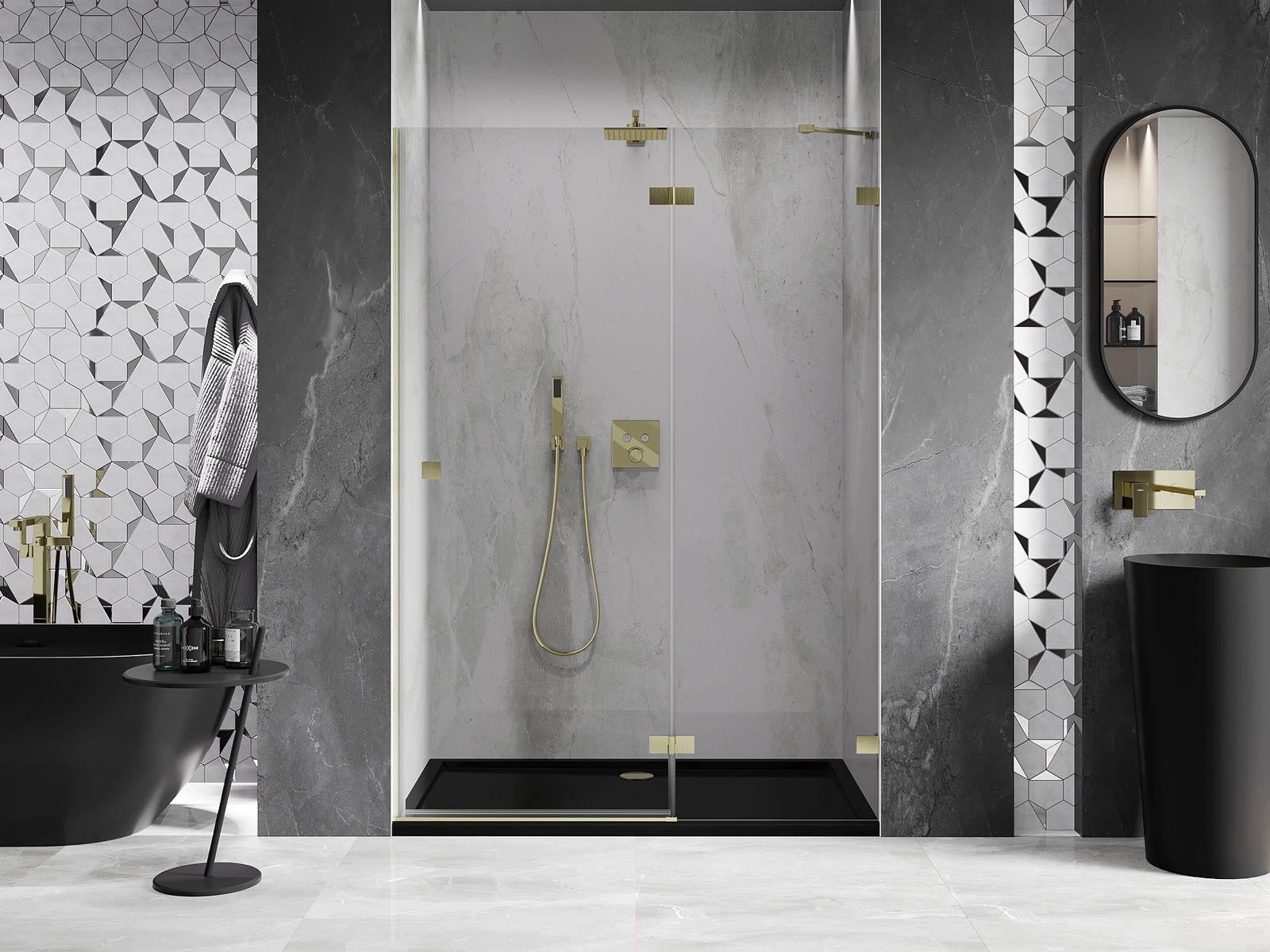 Mexen Lunar dušo durys, atsidarančios dešinės 130 cm, skaidrios, šlifuotas auksas - 834-130-000-55-00-P