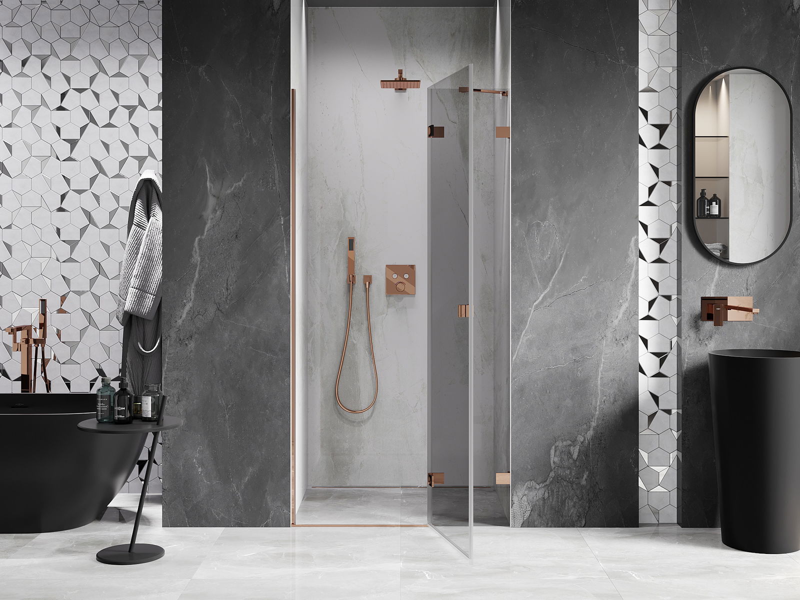 Produktą, atsižvelgiant į poreikius, galima sumontuoti tiek ant dušo padėklo, tiek tiesiogiai ant grindų. Universalus montavimo būdas leidžia pritaikyti produktą įvairių tipų vonios kambariams ir erdvės konfigūracijoms.