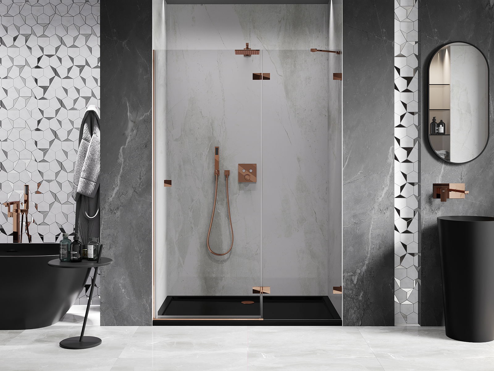 Mexen Lunar dušo durys, atidaromos į dešinę, 130 cm, skaidrios, rožinis auksas - 834-130-000-60-00-P