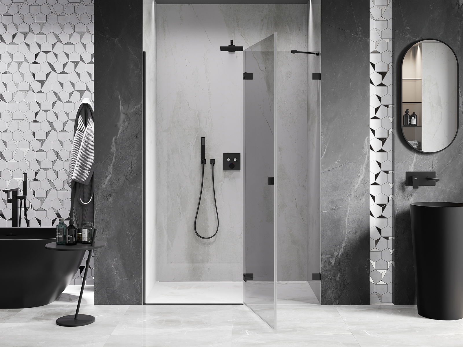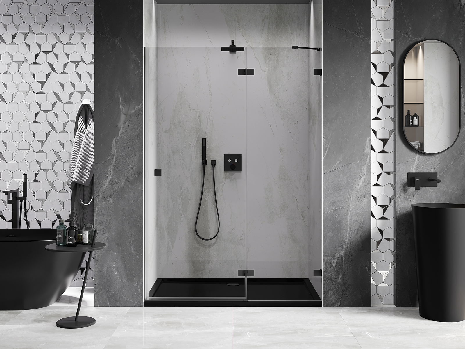 Mexen Lunar dešinės pusės dušo durys 135 cm, permatomos, juodos - 834-135-000-70-00-P