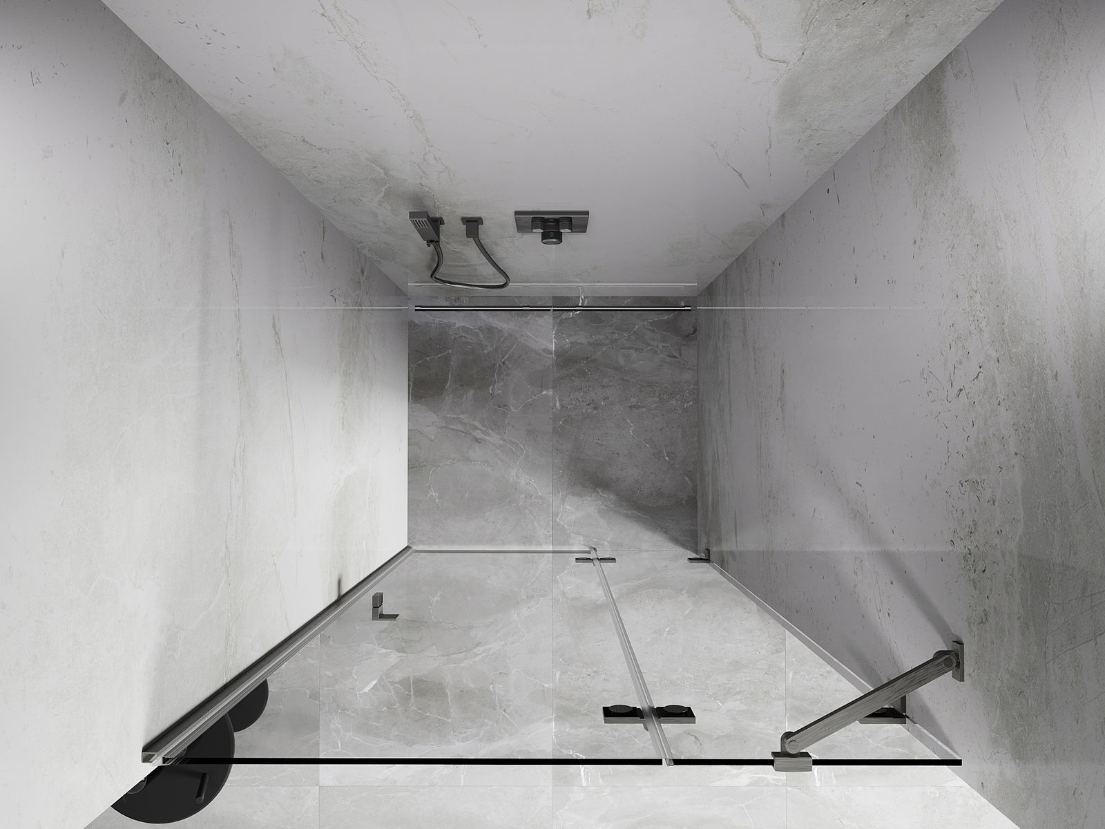 Spaustukai ir vyriai pagaminti iš labai patvaraus žalvario, papildomai sukuriantys lygią stiklo plokštumą. Tai puikus pasirinkimas, jungiantis eleganciją, patvarumą ir šiuolaikinį dizainą. Tokie sprendimai prideda dušo estetikai ir tuo pačiu palengvina švaros palaikymą.