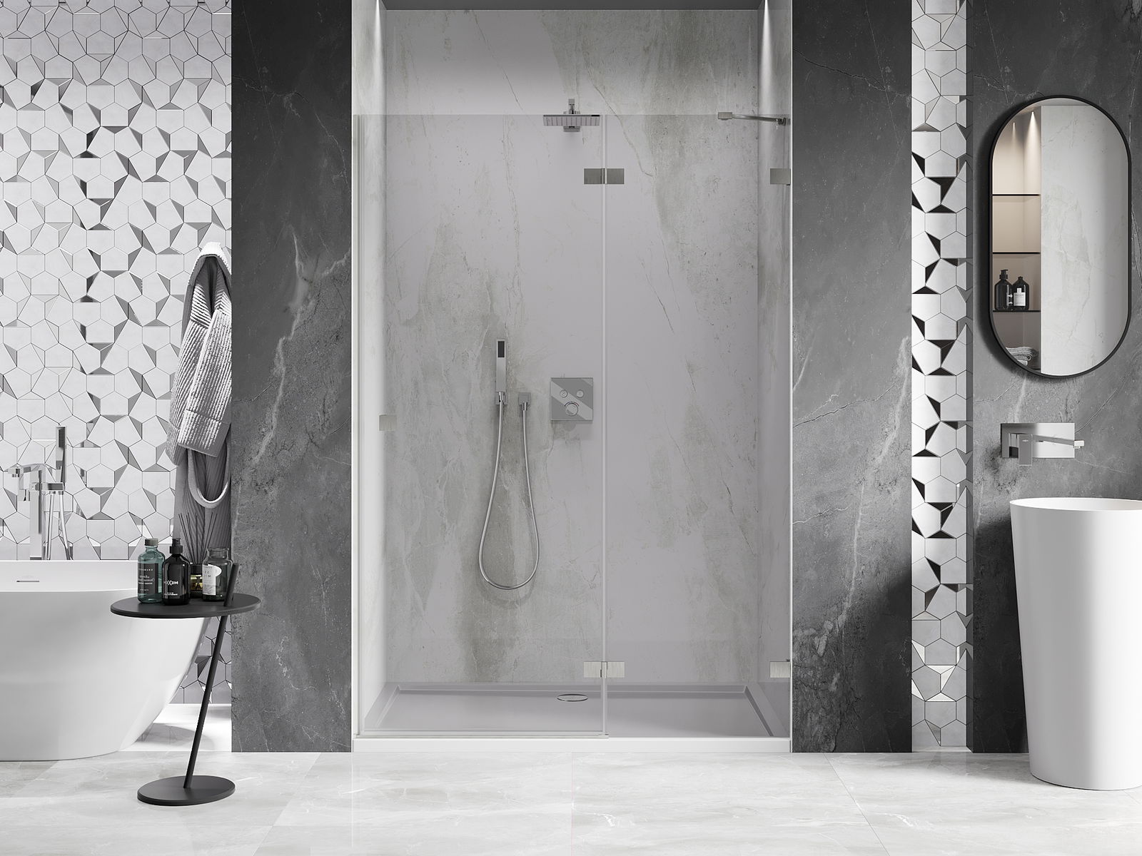 Produktą, atsižvelgiant į poreikius, galima sumontuoti tiek ant dušo padėklo, tiek tiesiogiai ant grindų. Universalus montavimo būdas leidžia pritaikyti produktą įvairių tipų vonios kambariams ir erdvės konfigūracijoms.