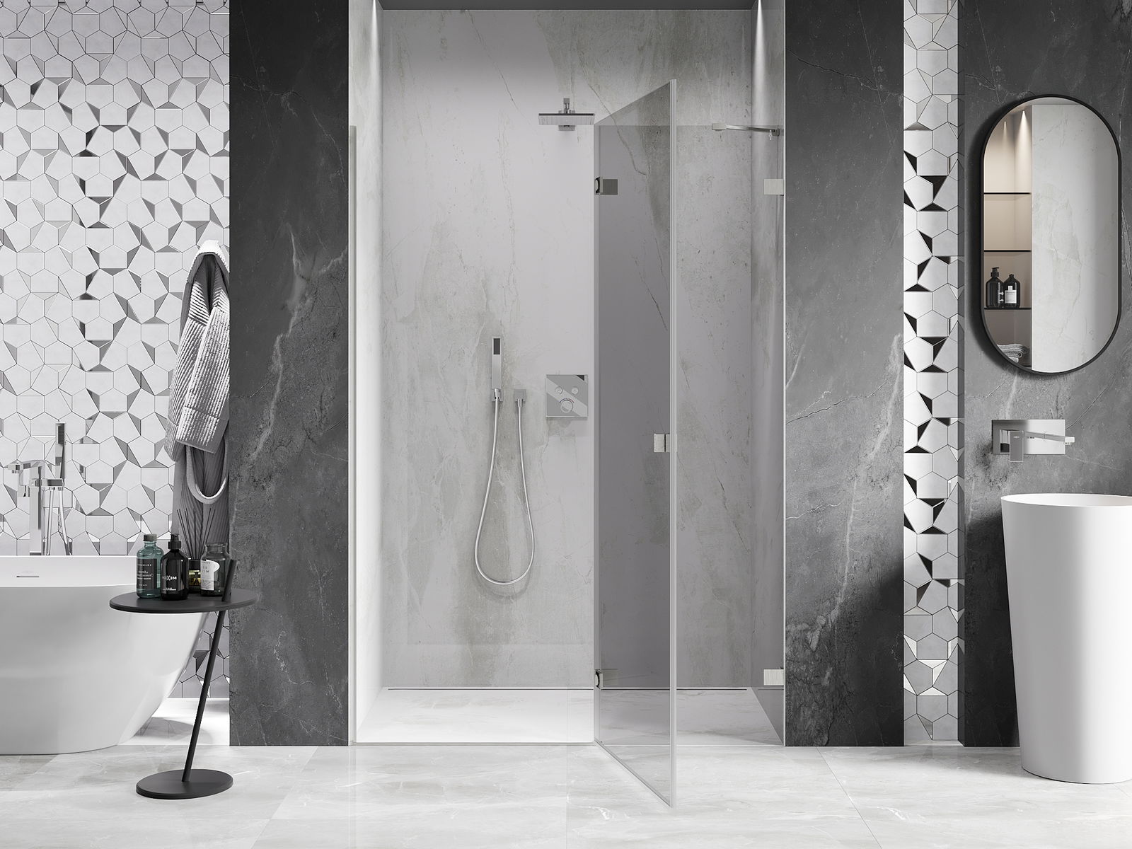 Produktą, atsižvelgiant į poreikius, galima sumontuoti tiek ant dušo padėklo, tiek tiesiogiai ant grindų. Universalus montavimo būdas leidžia pritaikyti produktą įvairių tipų vonios kambariams ir erdvės konfigūracijoms.