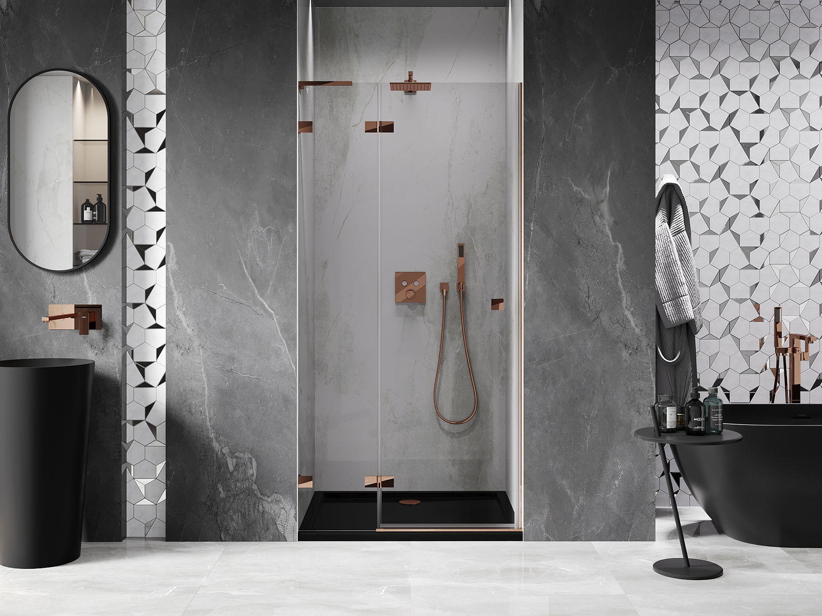 Produktą, atsižvelgiant į poreikius, galima sumontuoti tiek ant dušo padėklo, tiek tiesiogiai ant grindų. Universalus montavimo būdas leidžia pritaikyti produktą įvairių tipų vonios kambariams ir erdvės konfigūracijoms.