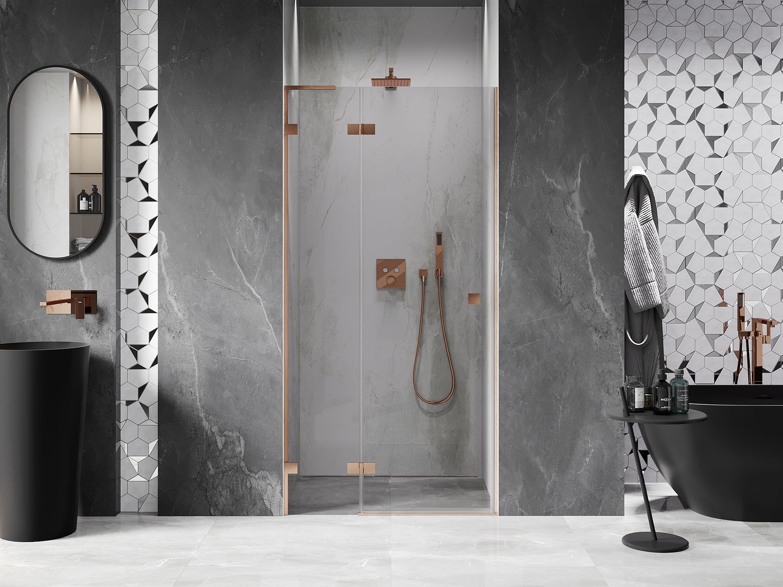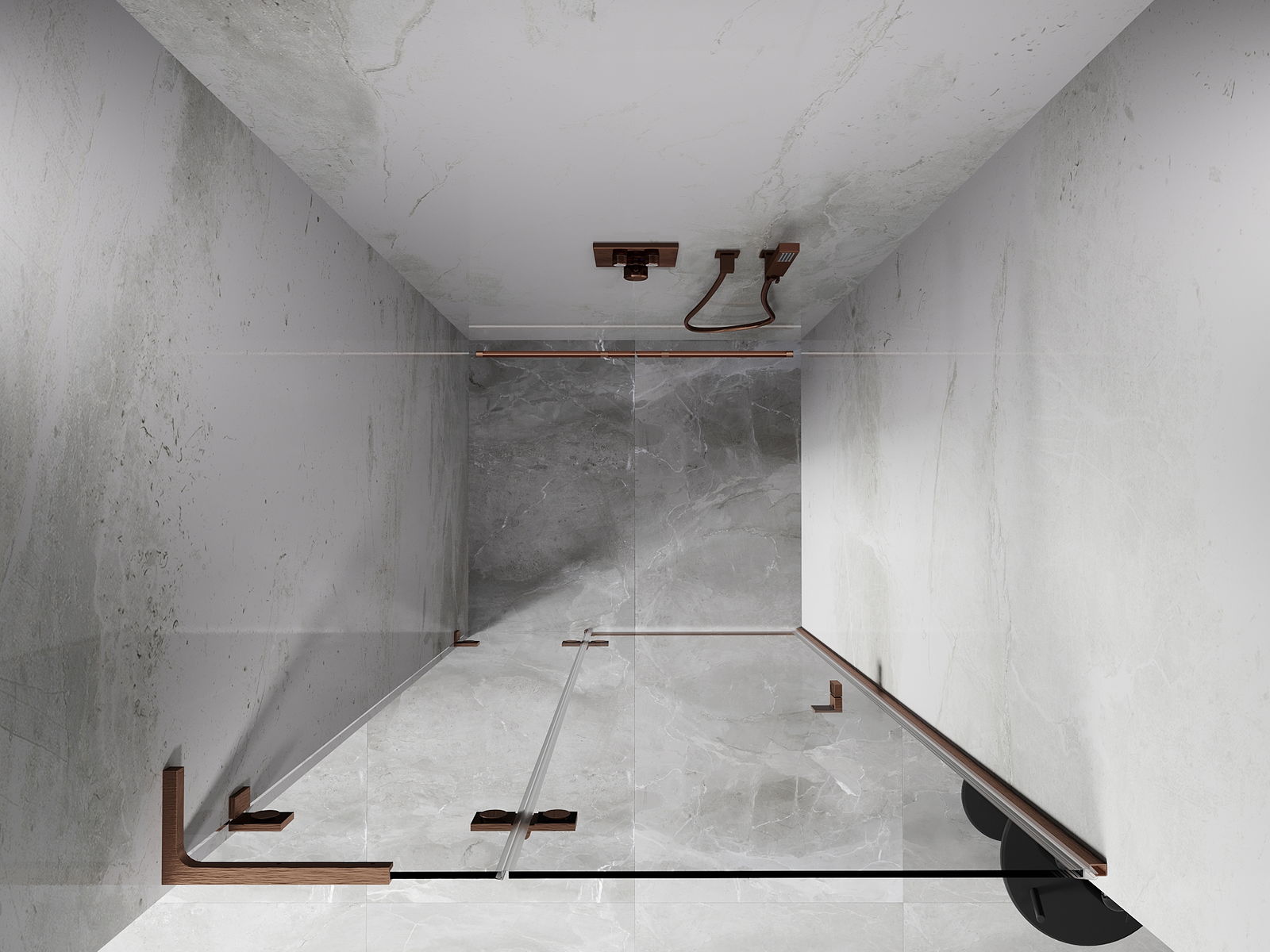 Mexen Lunar L kairiųjų varstomų durų dušo durys 120 cm, skaidrios, šlifuotas varis - 834L-120-000-65-00-L