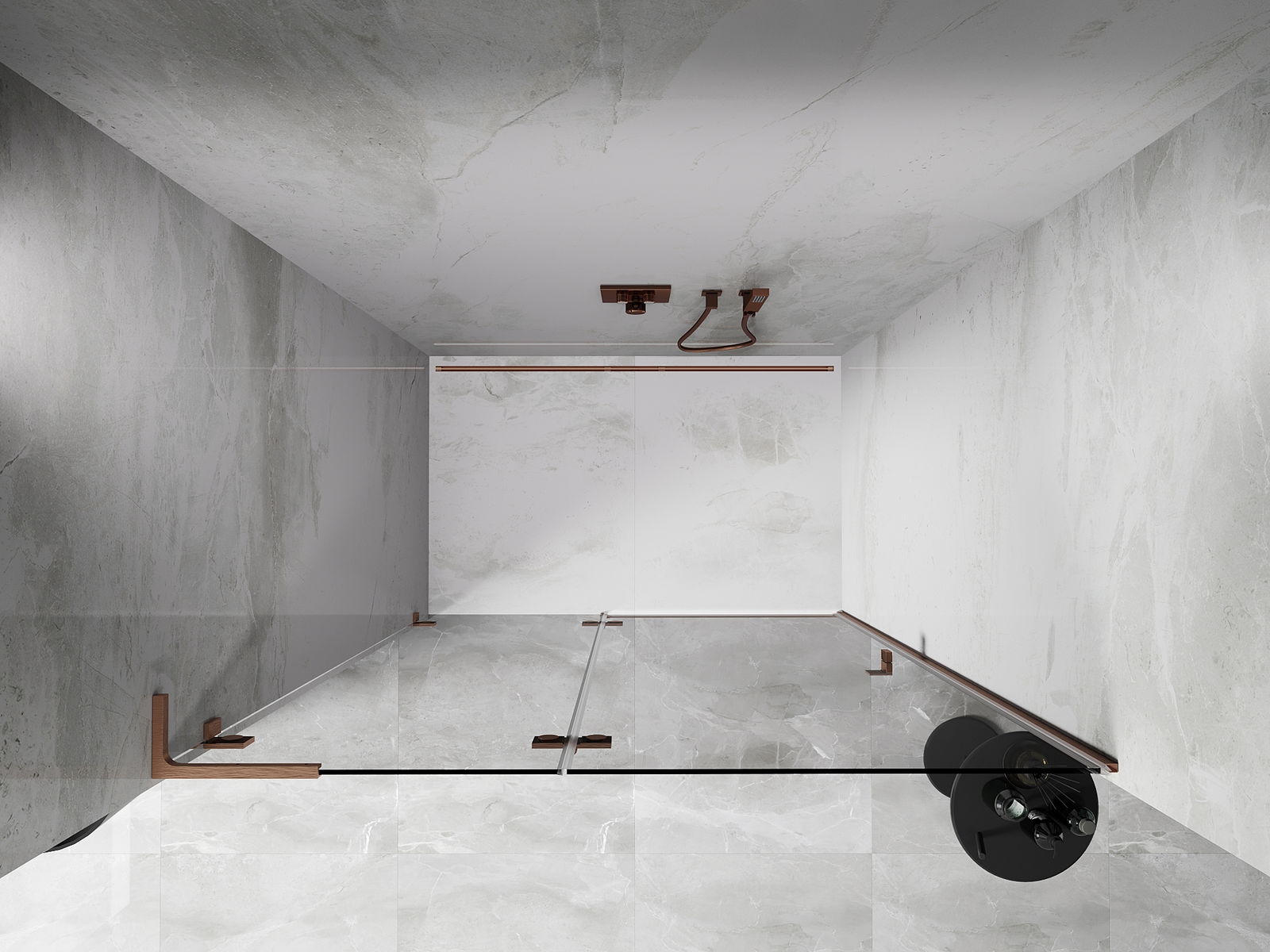 Mexen Lunar L Gaminės dažytos kairinės durelės 140 cm, skaidrios, šepečiuotas varis - 834L-140-000-65-00-L