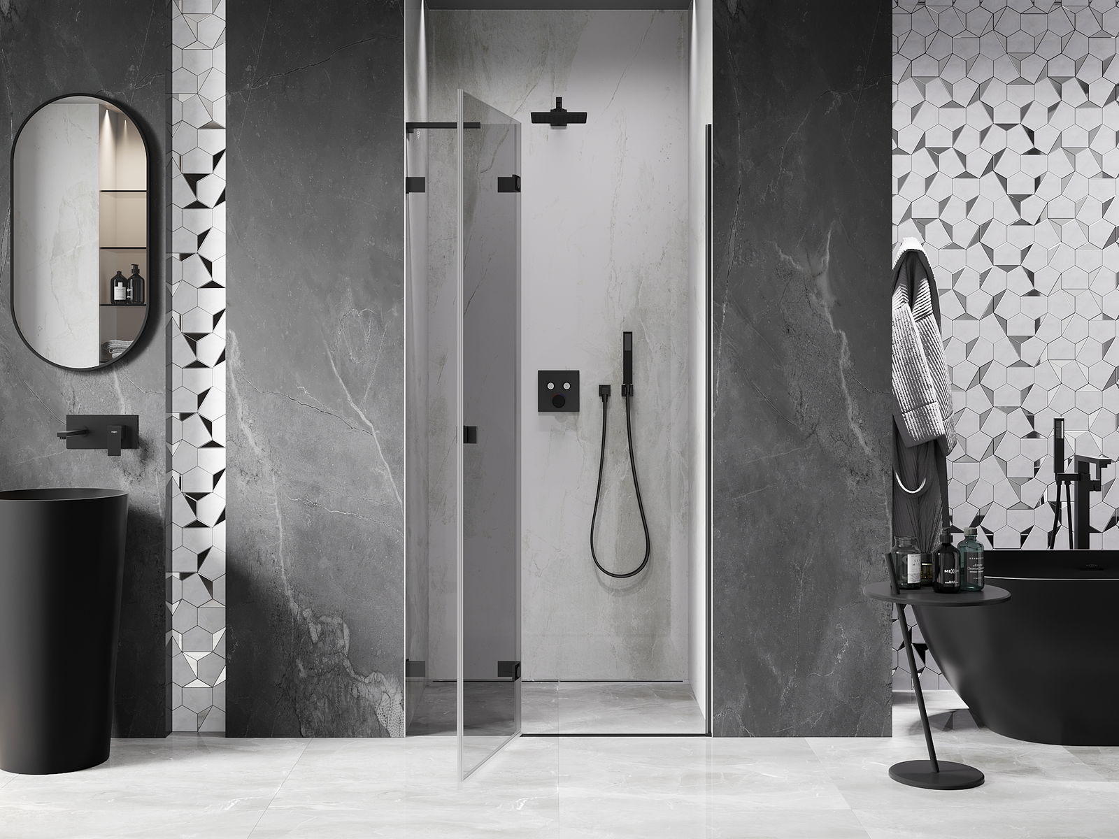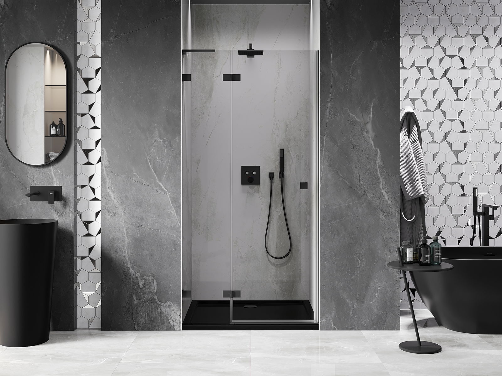 Produktą, atsižvelgiant į poreikius, galima sumontuoti tiek ant dušo padėklo, tiek tiesiogiai ant grindų. Universalus montavimo būdas leidžia pritaikyti produktą įvairių tipų vonios kambariams ir erdvės konfigūracijoms.