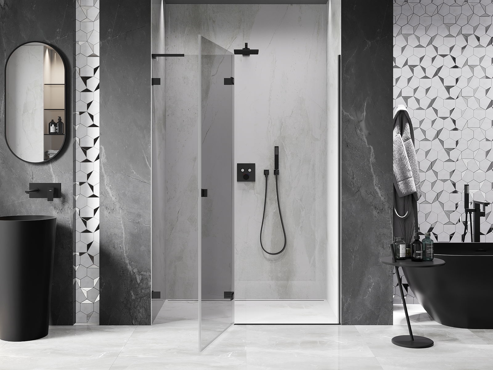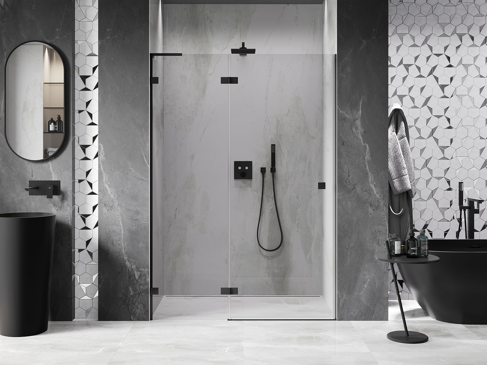 Produktą, atsižvelgiant į poreikius, galima sumontuoti tiek ant dušo padėklo, tiek tiesiogiai ant grindų. Universalus montavimo būdas leidžia pritaikyti produktą įvairių tipų vonios kambariams ir erdvės konfigūracijoms.