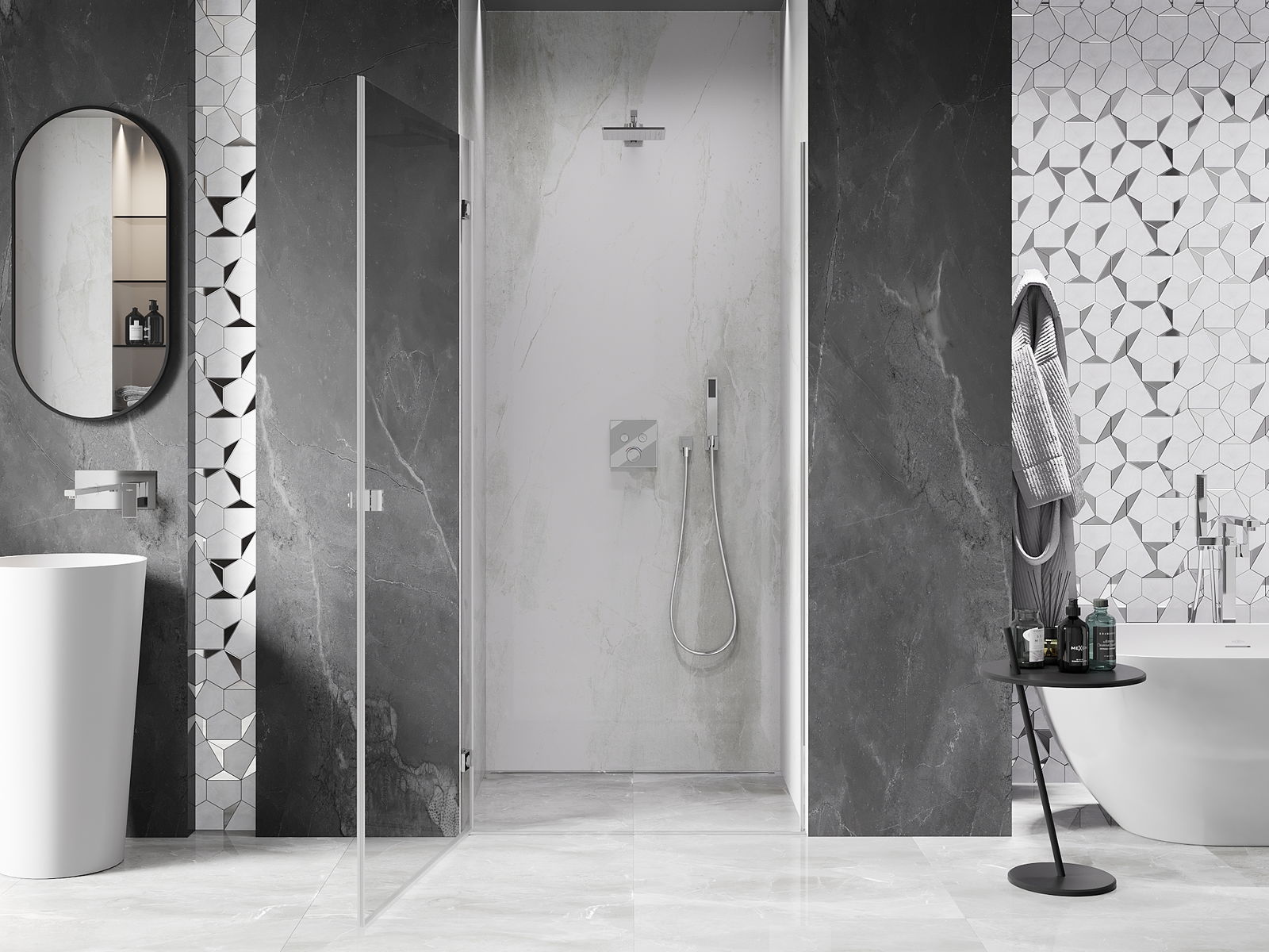 Produktą, atsižvelgiant į poreikius, galima sumontuoti tiek ant dušo padėklo, tiek tiesiogiai ant grindų. Universalus montavimo būdas leidžia pritaikyti produktą įvairių tipų vonios kambariams ir erdvės konfigūracijoms.