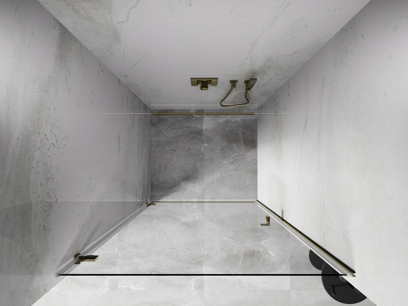 Mexen Lunar-B kairvadurių dušo durys, kairė pusė 85 cm, permatomos, auksinės - 832-085-000-50-00-L