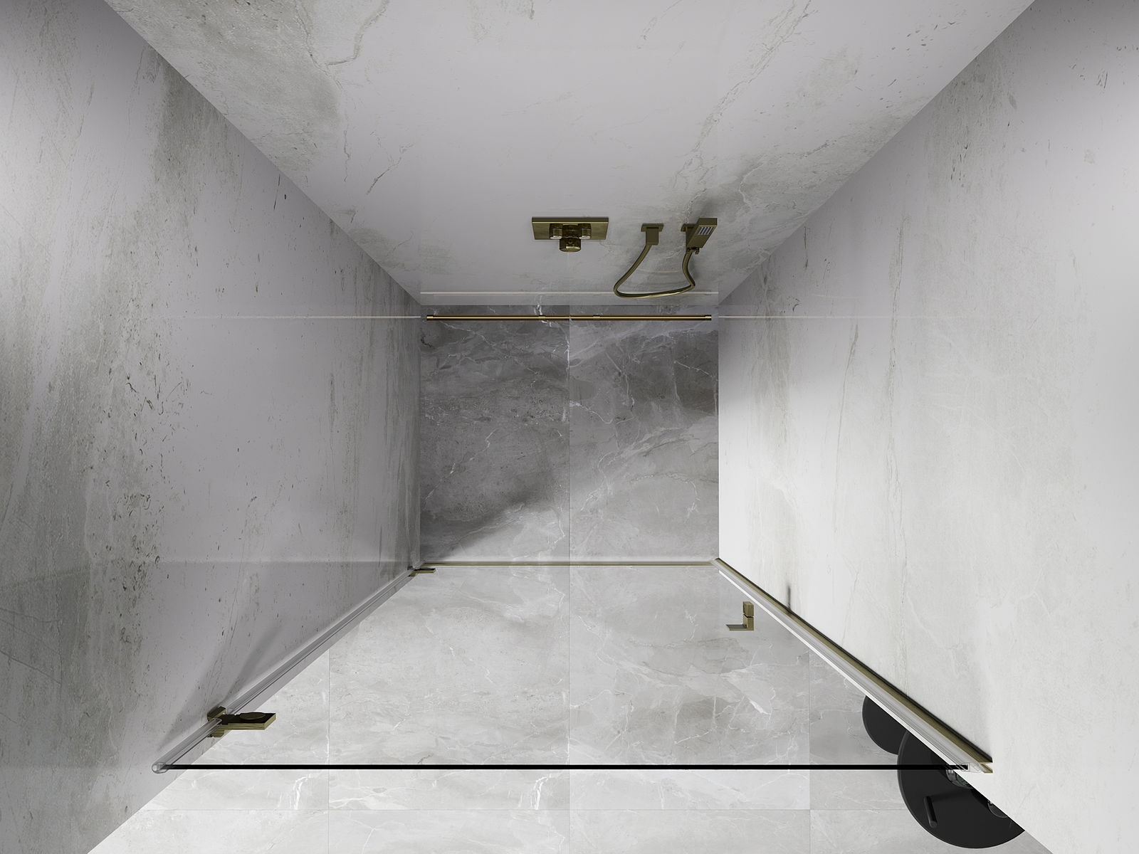 Mexen Lunar-B kairios pusės dušo durys, darinėjamos, 80 cm, permatomos, paauksuotos šlifuotos - 832-080-000-55-00-L