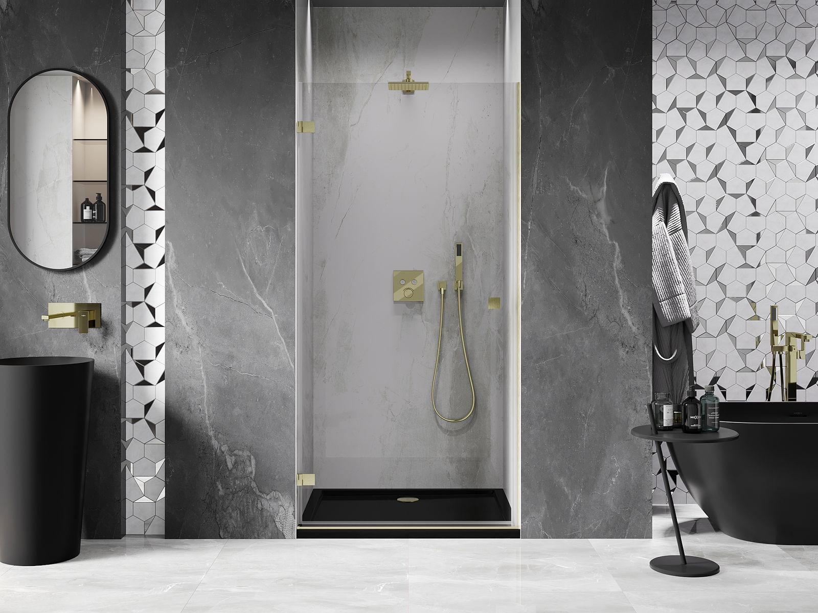 Mexen Lunar-B durų prausymo atidaromos kairės 90 cm, skaidrus, auksinis matinis - 832-090-000-55-00-L