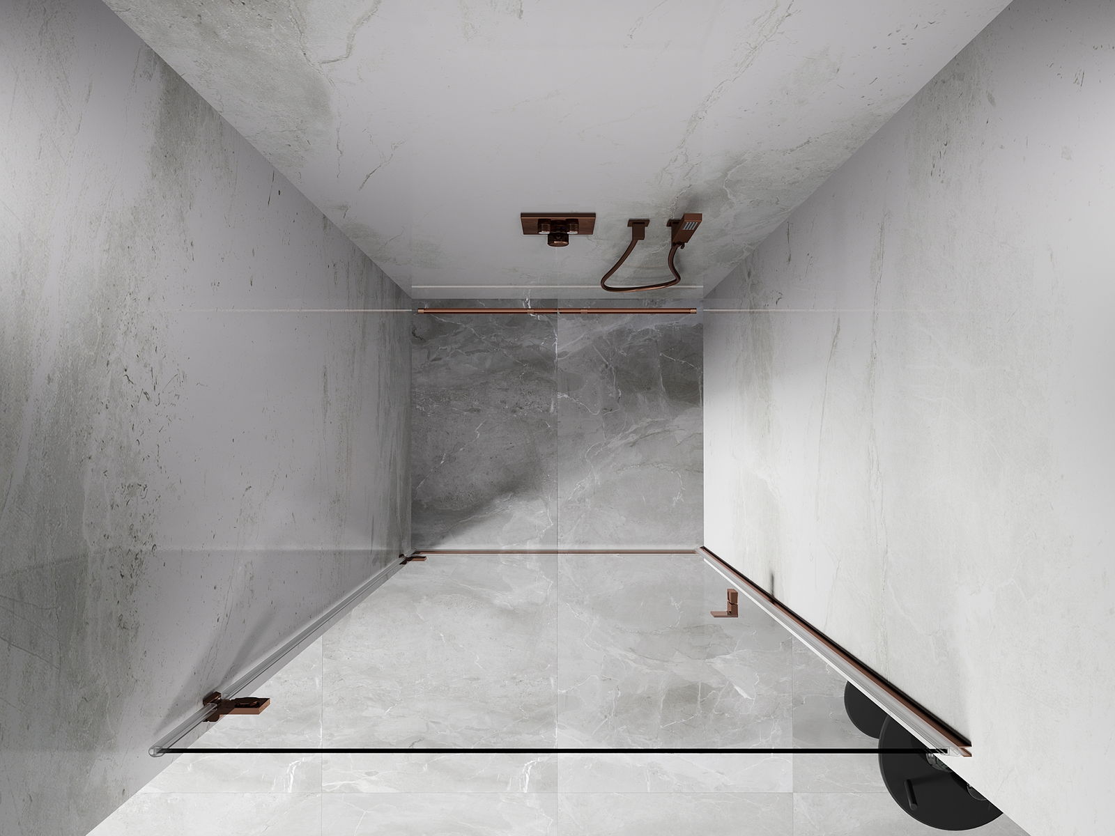 Mexen Lunar-B kairiosios pusės dušo durys atidaromos 100 cm, permatomos, rožinis auksas - 832-100-000-60-00-L