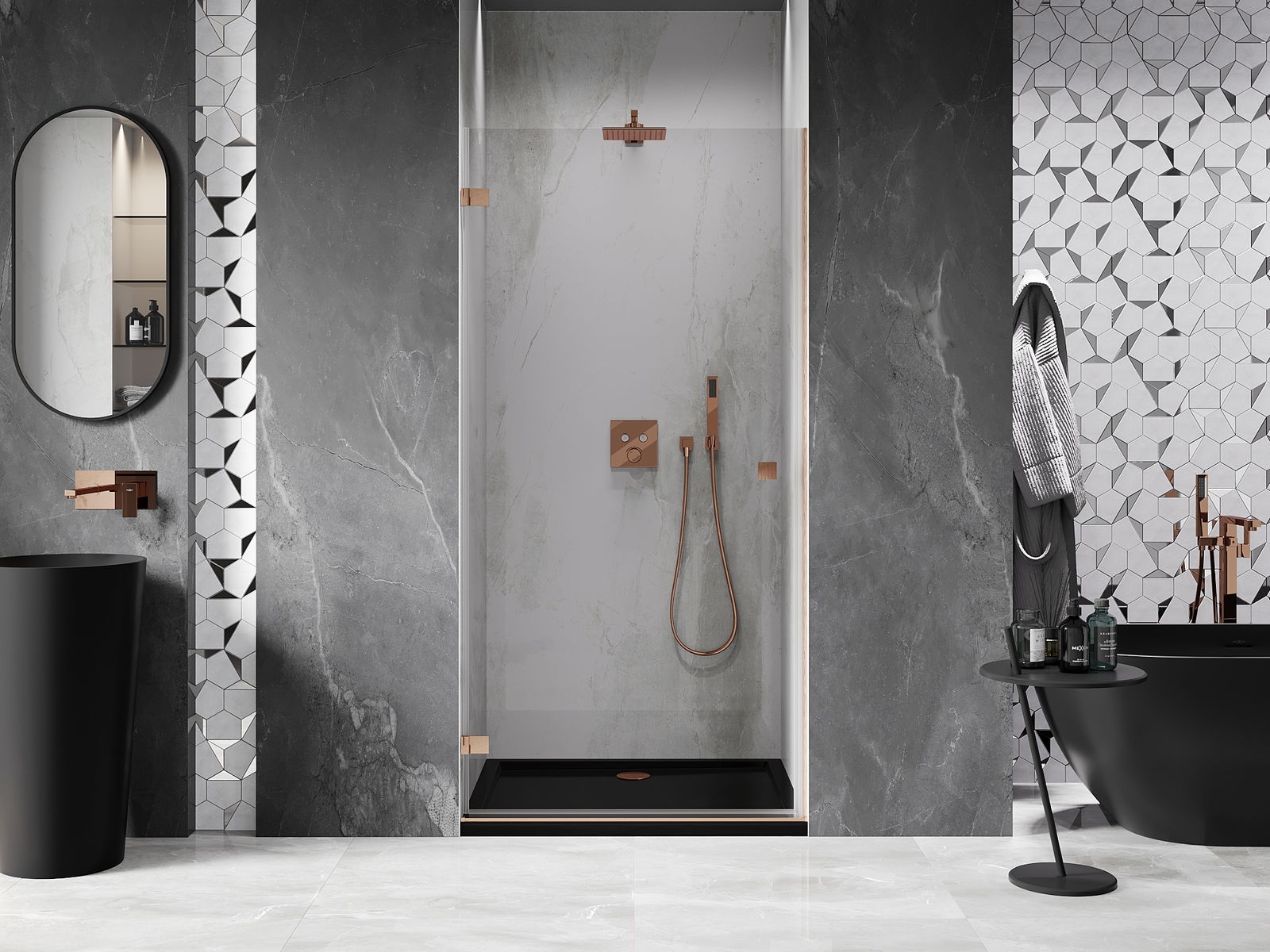 Mexen Lunar-B kairiosios pusės atveriamos dušo durys 95 cm, permatomos, šlifuotas varis - 832-095-000-65-00-L