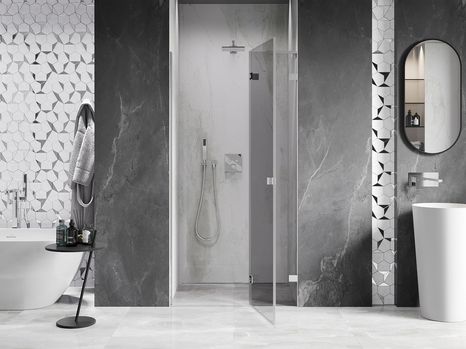 Produktą, atsižvelgiant į poreikius, galima sumontuoti tiek ant dušo padėklo, tiek tiesiogiai ant grindų. Universalus montavimo būdas leidžia pritaikyti produktą įvairių tipų vonios kambariams ir erdvės konfigūracijoms.
