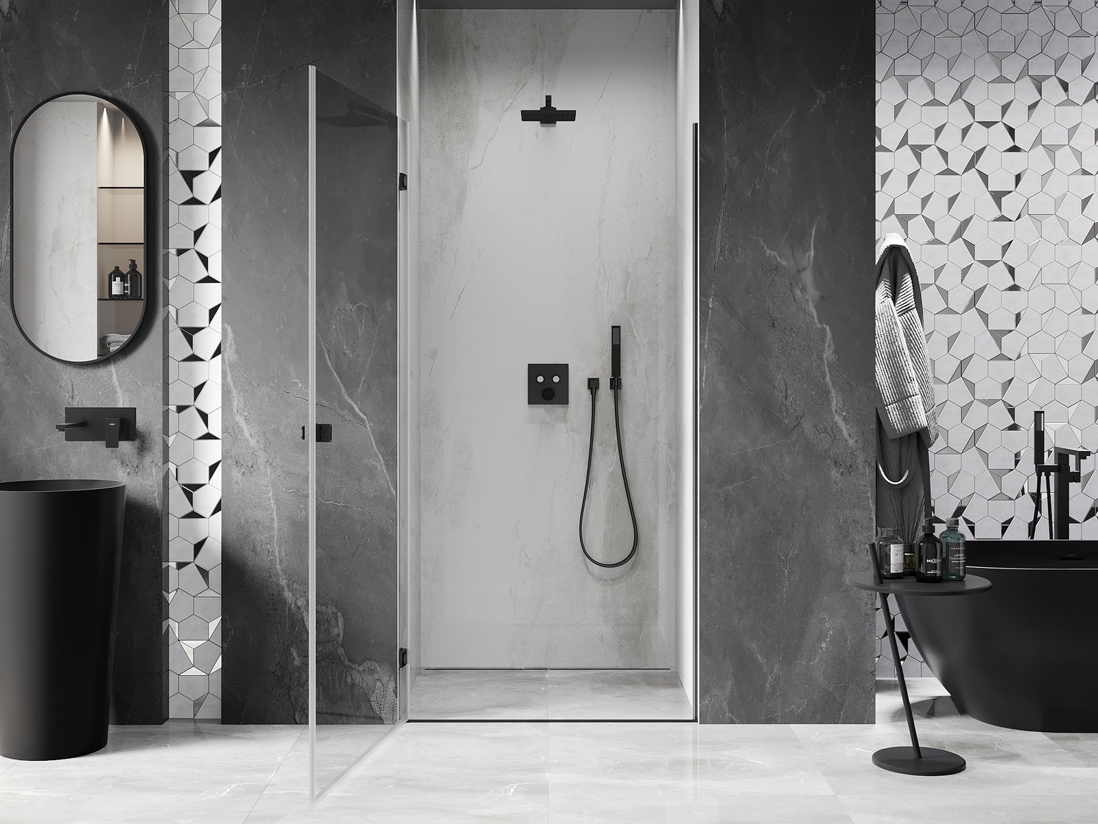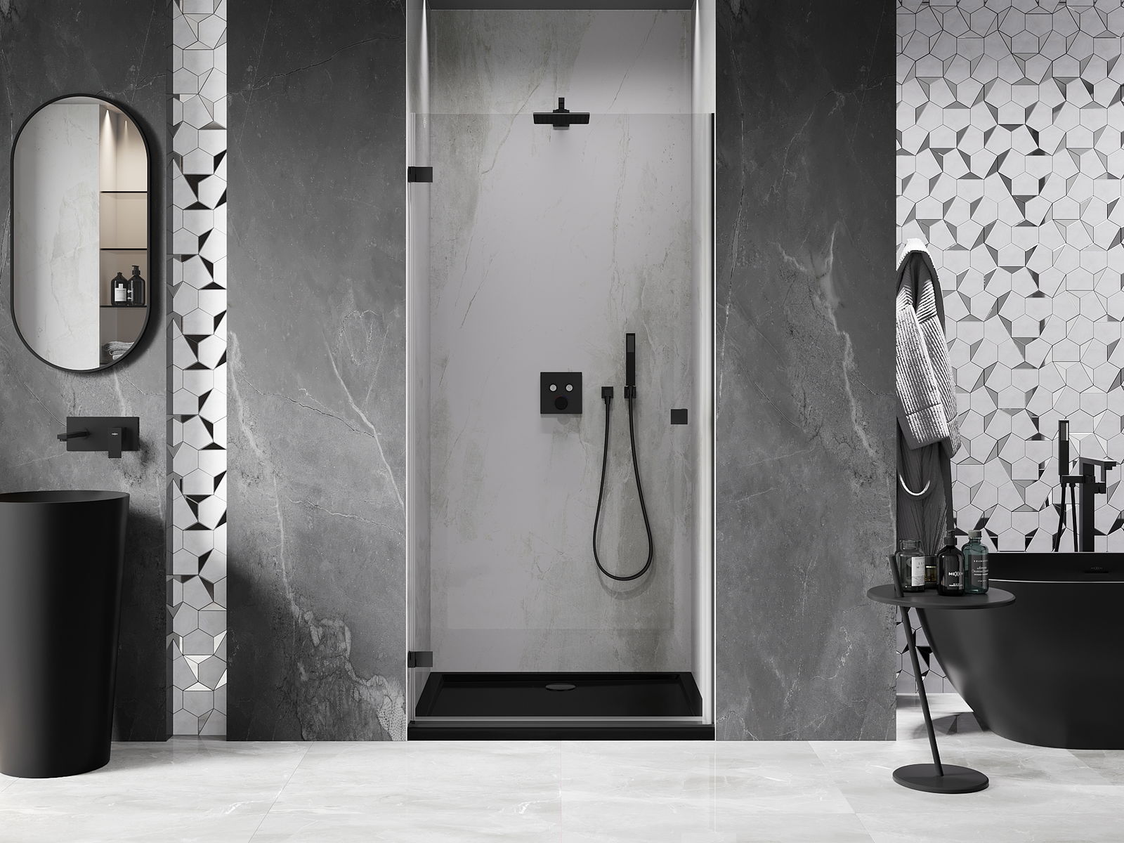 Produktą, atsižvelgiant į poreikius, galima sumontuoti tiek ant dušo padėklo, tiek tiesiogiai ant grindų. Universalus montavimo būdas leidžia pritaikyti produktą įvairių tipų vonios kambariams ir erdvės konfigūracijoms.