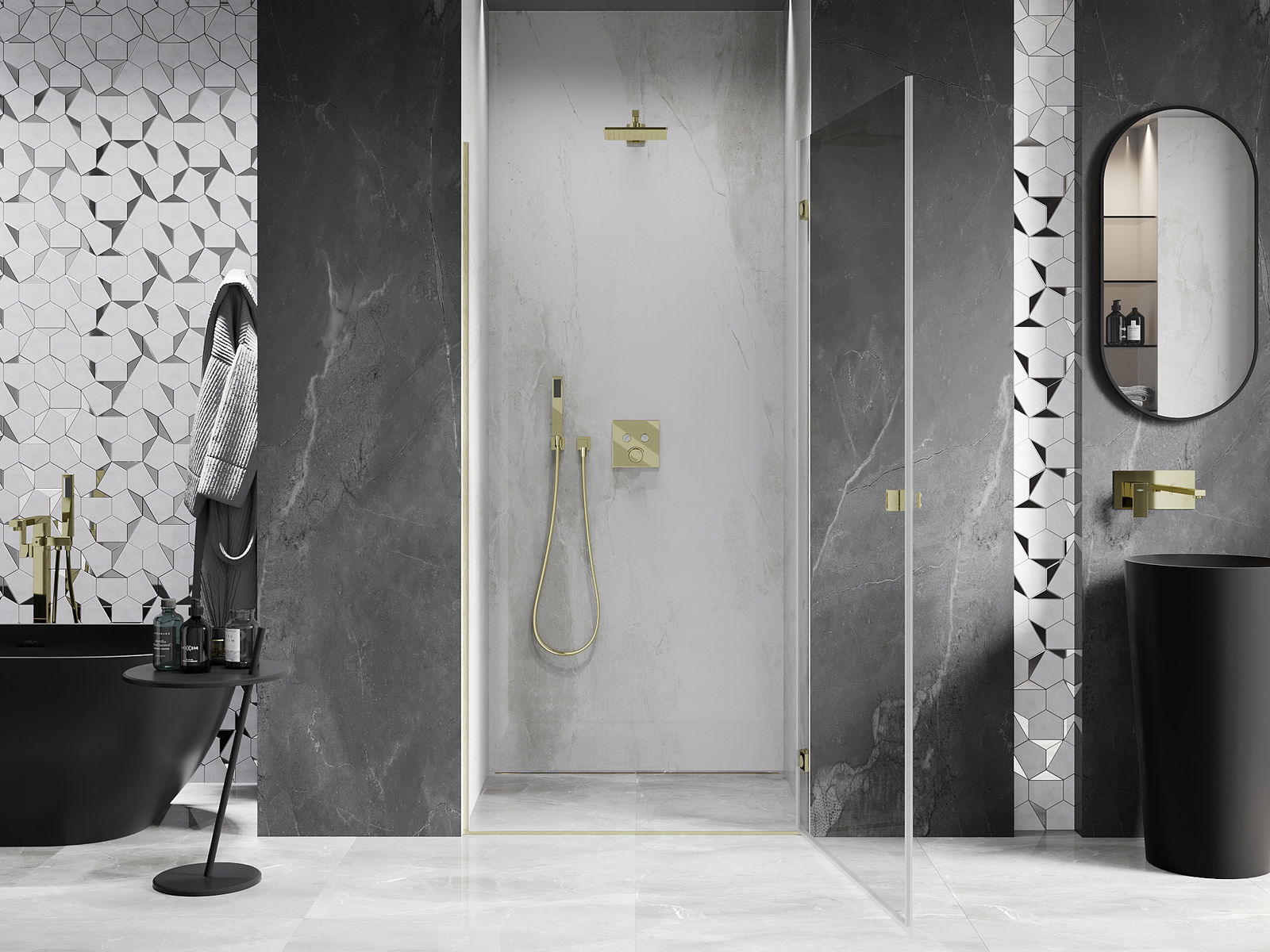 Produktą, atsižvelgiant į poreikius, galima sumontuoti tiek ant dušo padėklo, tiek tiesiogiai ant grindų. Universalus montavimo būdas leidžia pritaikyti produktą įvairių tipų vonios kambariams ir erdvės konfigūracijoms.