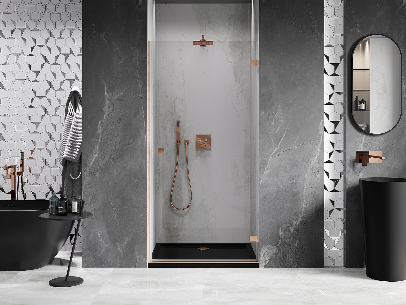 Produktą, atsižvelgiant į poreikius, galima sumontuoti tiek ant dušo padėklo, tiek tiesiogiai ant grindų. Universalus montavimo būdas leidžia pritaikyti produktą įvairių tipų vonios kambariams ir erdvės konfigūracijoms.