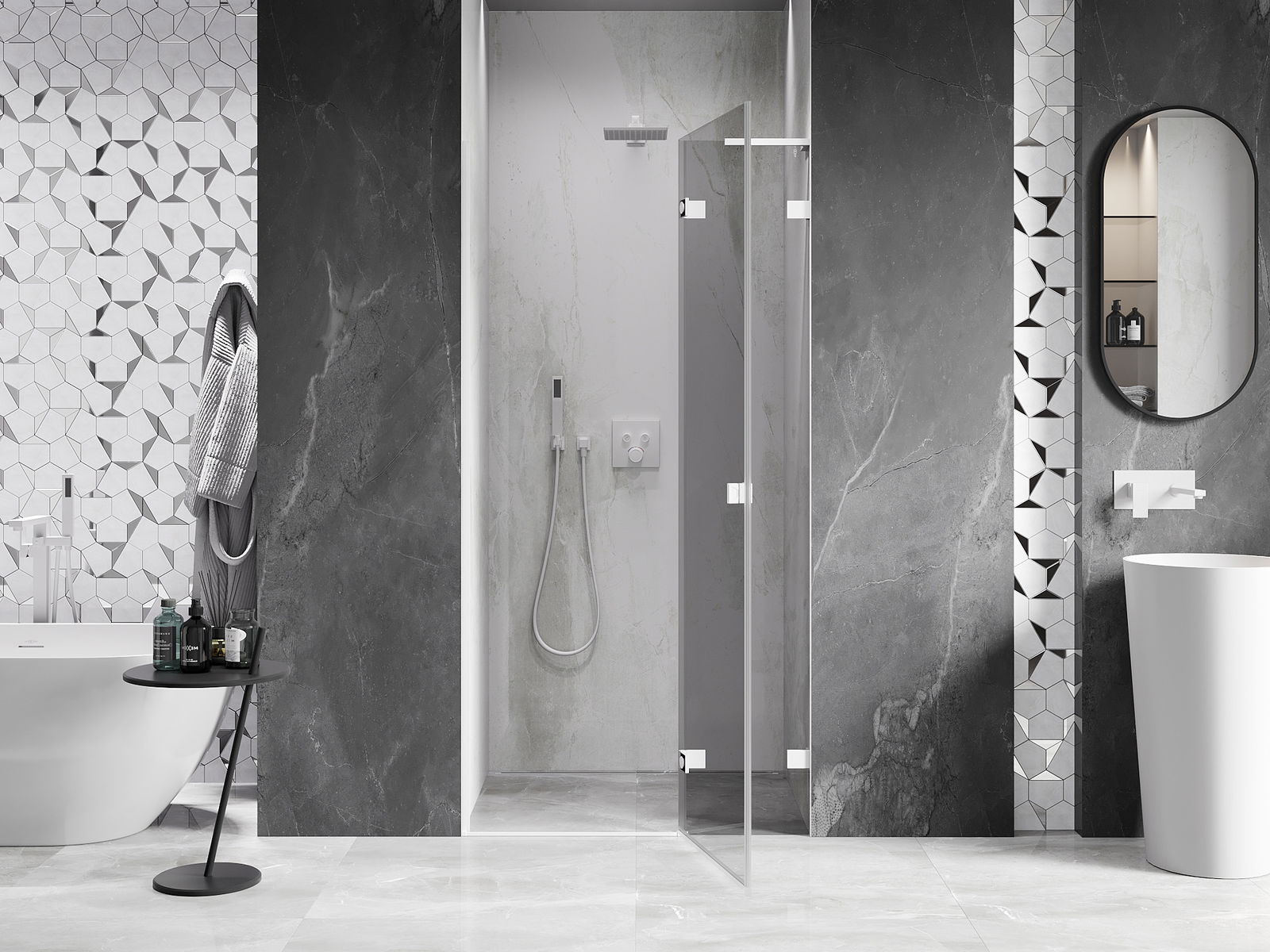 Produktą, atsižvelgiant į poreikius, galima sumontuoti tiek ant dušo padėklo, tiek tiesiogiai ant grindų. Universalus montavimo būdas leidžia pritaikyti produktą įvairių tipų vonios kambariams ir erdvės konfigūracijoms.