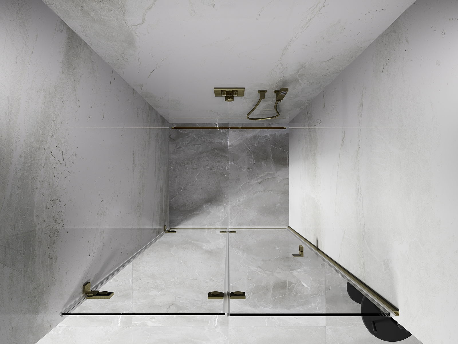Spaustukai ir vyriai pagaminti iš labai patvaraus žalvario, papildomai sukuriantys lygią stiklo plokštumą. Tai puikus pasirinkimas, jungiantis eleganciją, patvarumą ir šiuolaikinį dizainą. Tokie sprendimai prideda dušo estetikai ir tuo pačiu palengvina švaros palaikymą.