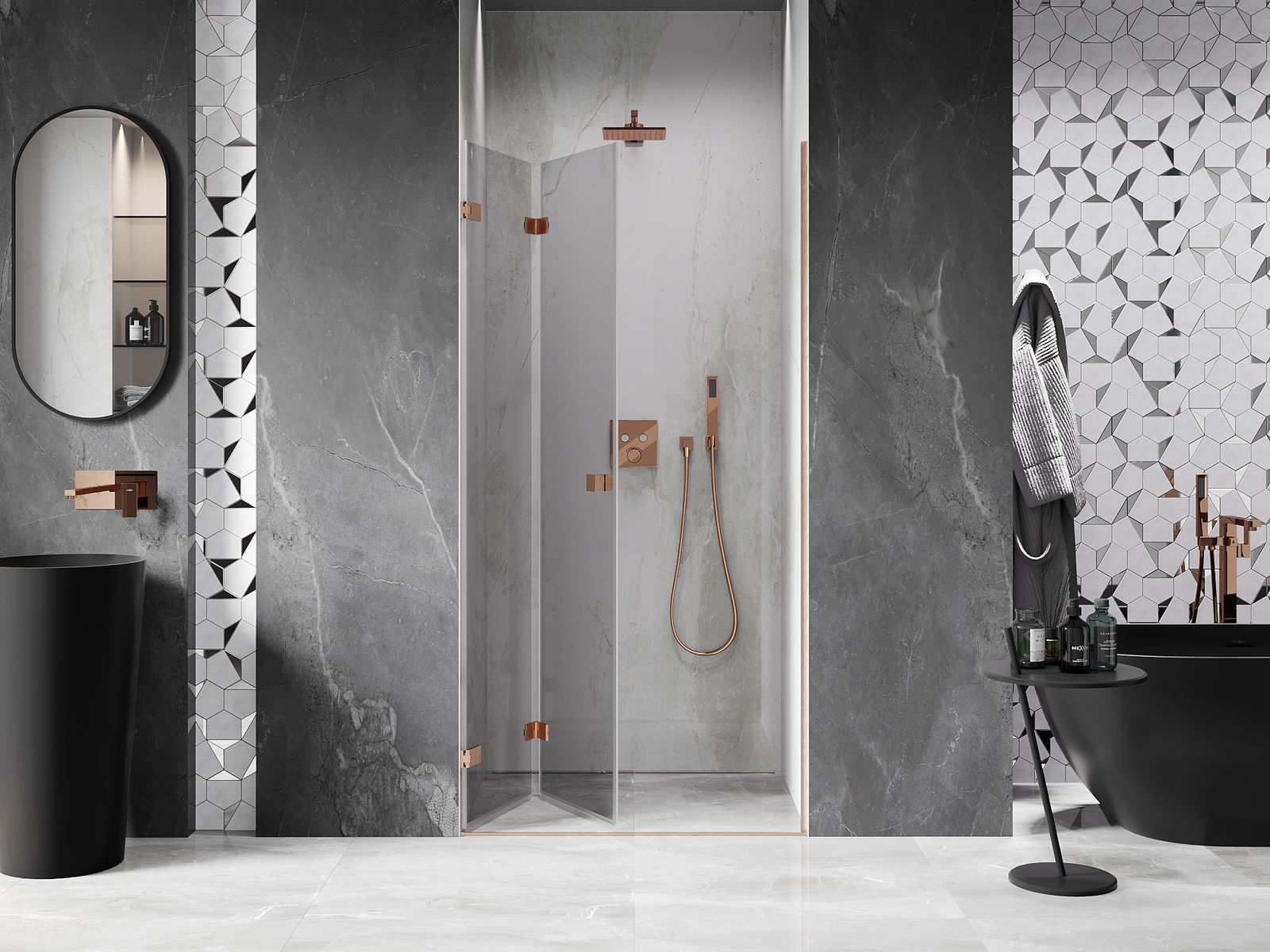 Mexen Lunar-F sulankstomos dušo durys kairės 70 cm, skaidrus, šlifuotas varis - 836-070-000-65-00-L