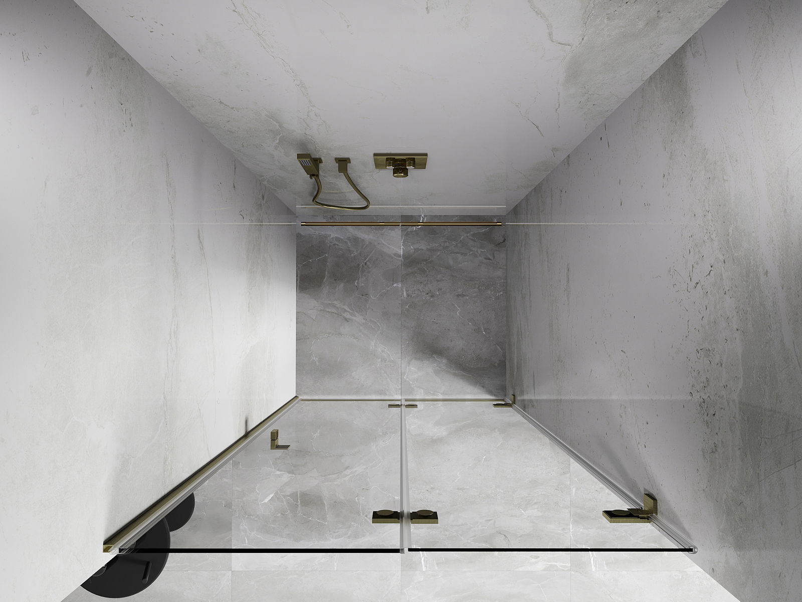 Spaustukai ir vyriai pagaminti iš labai patvaraus žalvario, papildomai sukuriantys lygią stiklo plokštumą. Tai puikus pasirinkimas, jungiantis eleganciją, patvarumą ir šiuolaikinį dizainą. Tokie sprendimai prideda dušo estetikai ir tuo pačiu palengvina švaros palaikymą.