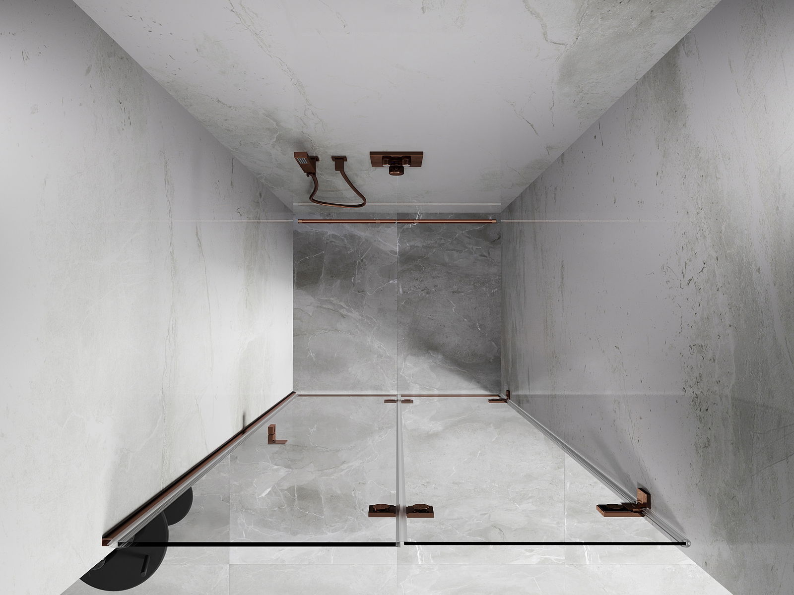 Spaustukai ir vyriai pagaminti iš labai patvaraus žalvario, papildomai sukuriantys lygią stiklo plokštumą. Tai puikus pasirinkimas, jungiantis eleganciją, patvarumą ir šiuolaikinį dizainą. Tokie sprendimai prideda dušo estetikai ir tuo pačiu palengvina švaros palaikymą.