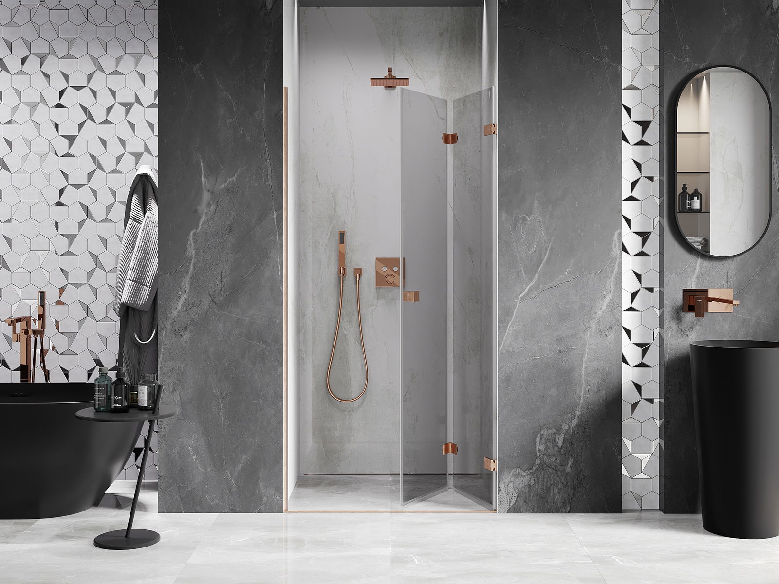 Mexen Lunar-F sulankstomos dušo durys dešinės 75 cm, skaidrios, šlifuotas varis - 836-075-000-65-00-P