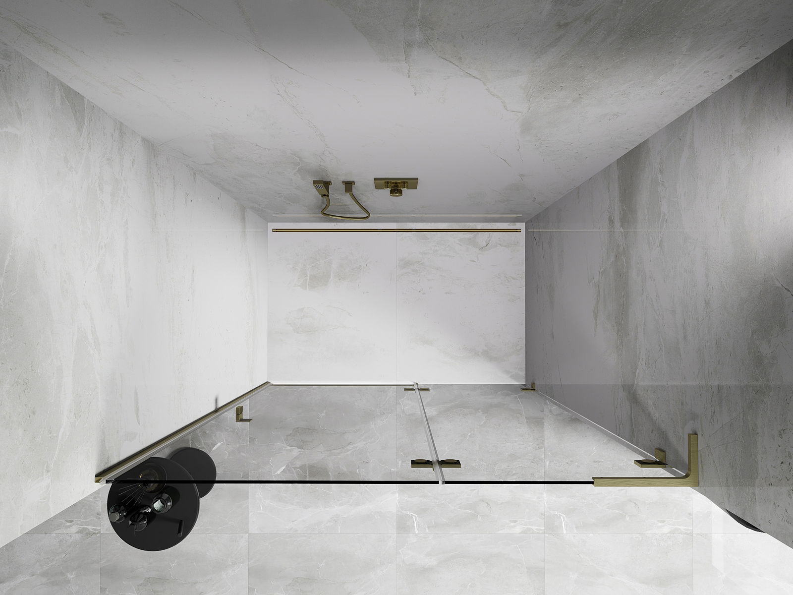 Mexen Lunar L dušo durys varstomos dešinės 130 cm, permatomos, auksinės šlifuotos - 834L-130-000-55-00-P