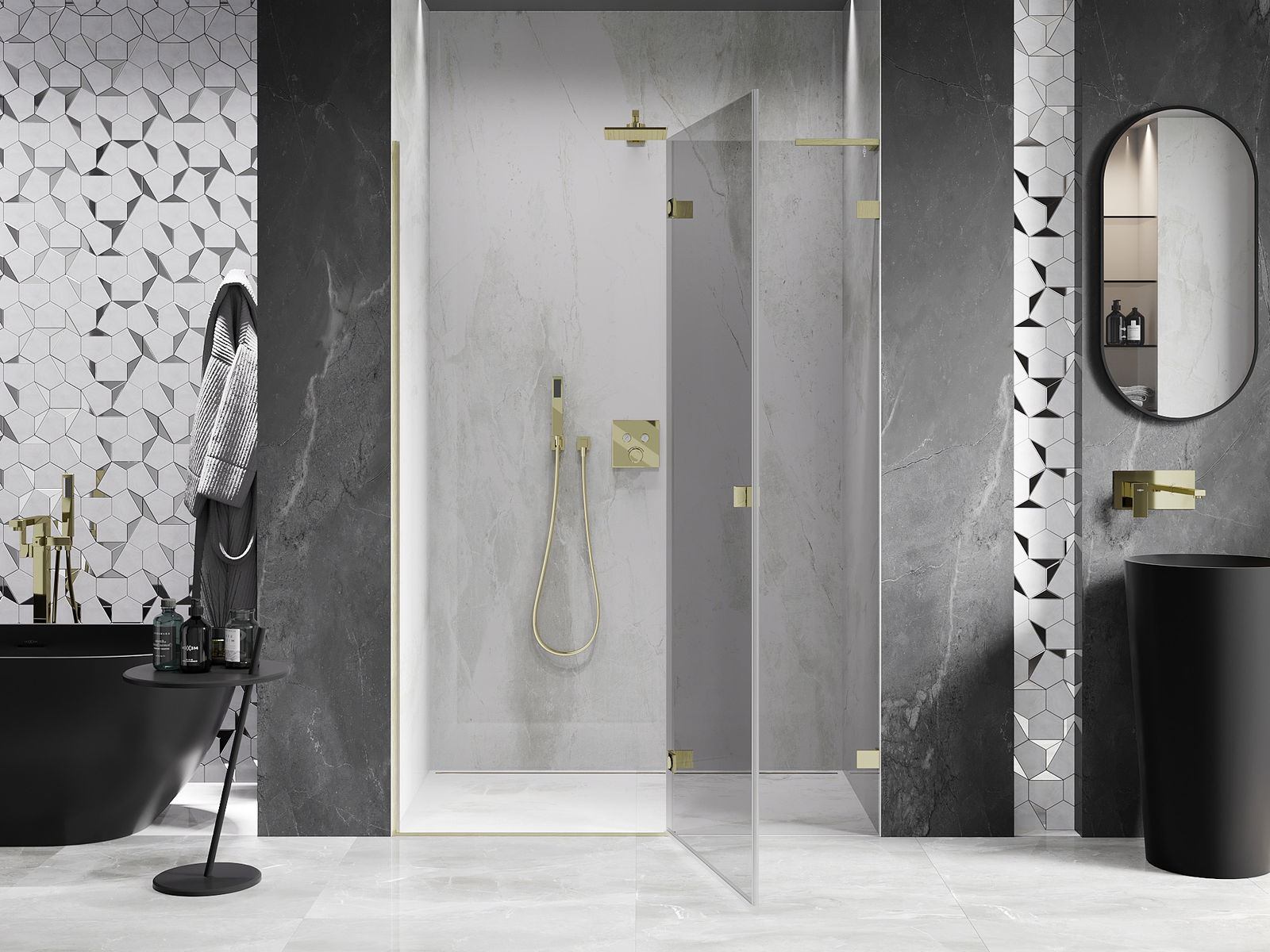 Mexen Lunar L dešinės pusės dušo durys atveriamos 135 cm, skaidrios, šlifuotas auksinis - 834L-135-000-55-00-P