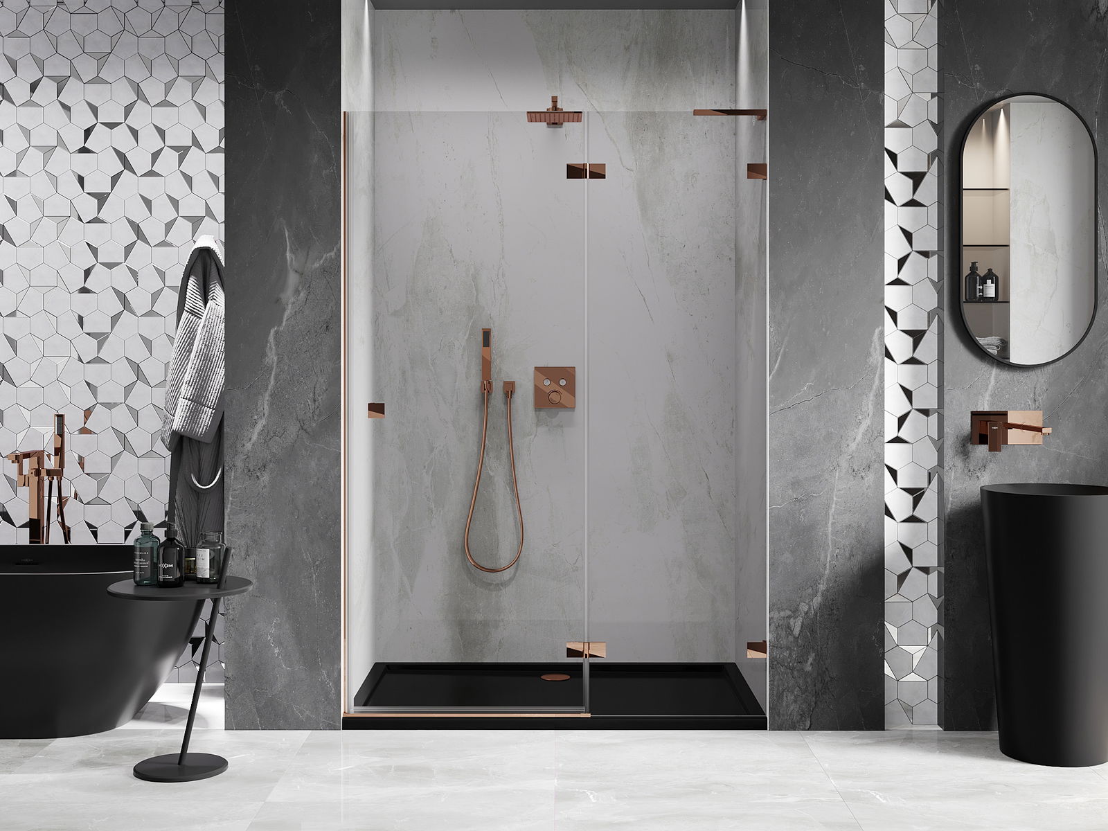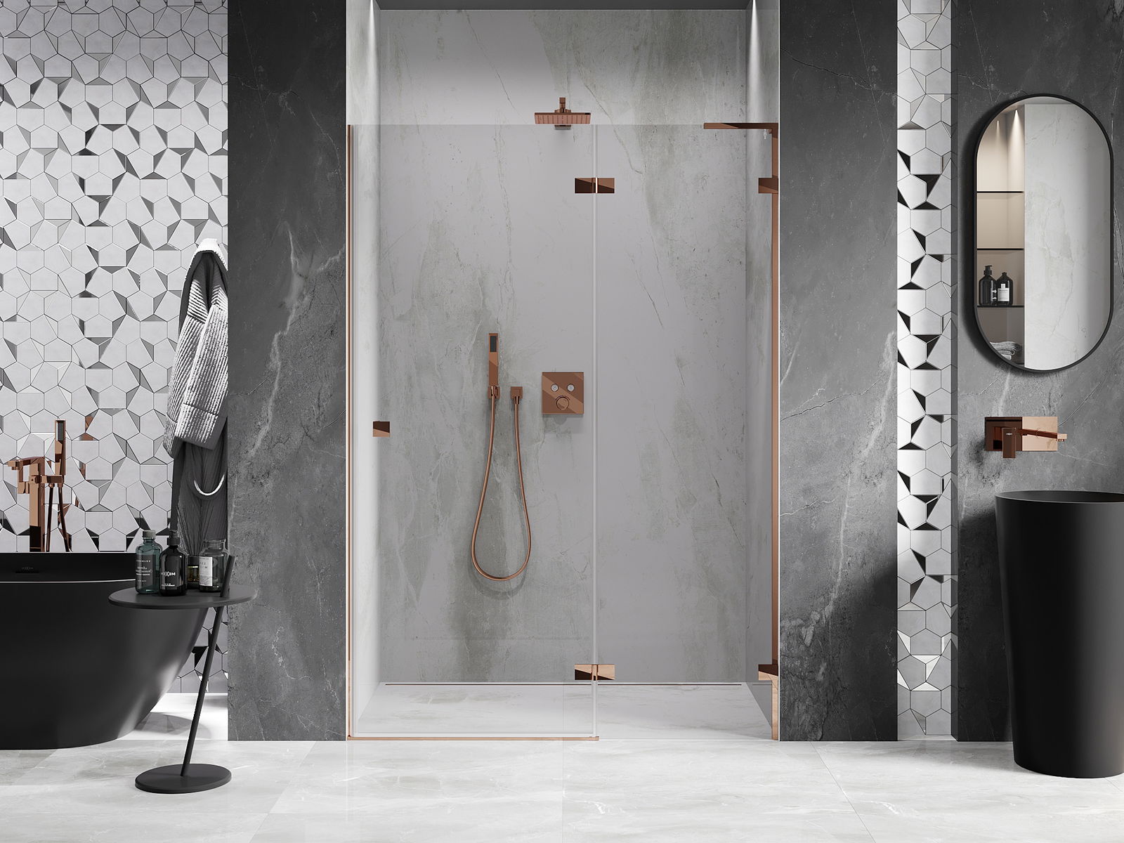 Mexen Lunar L dušo durys, atveriamos dešinės pusės, 140 cm, skaidrios, rožinio aukso - 834L-140-000-60-00-P