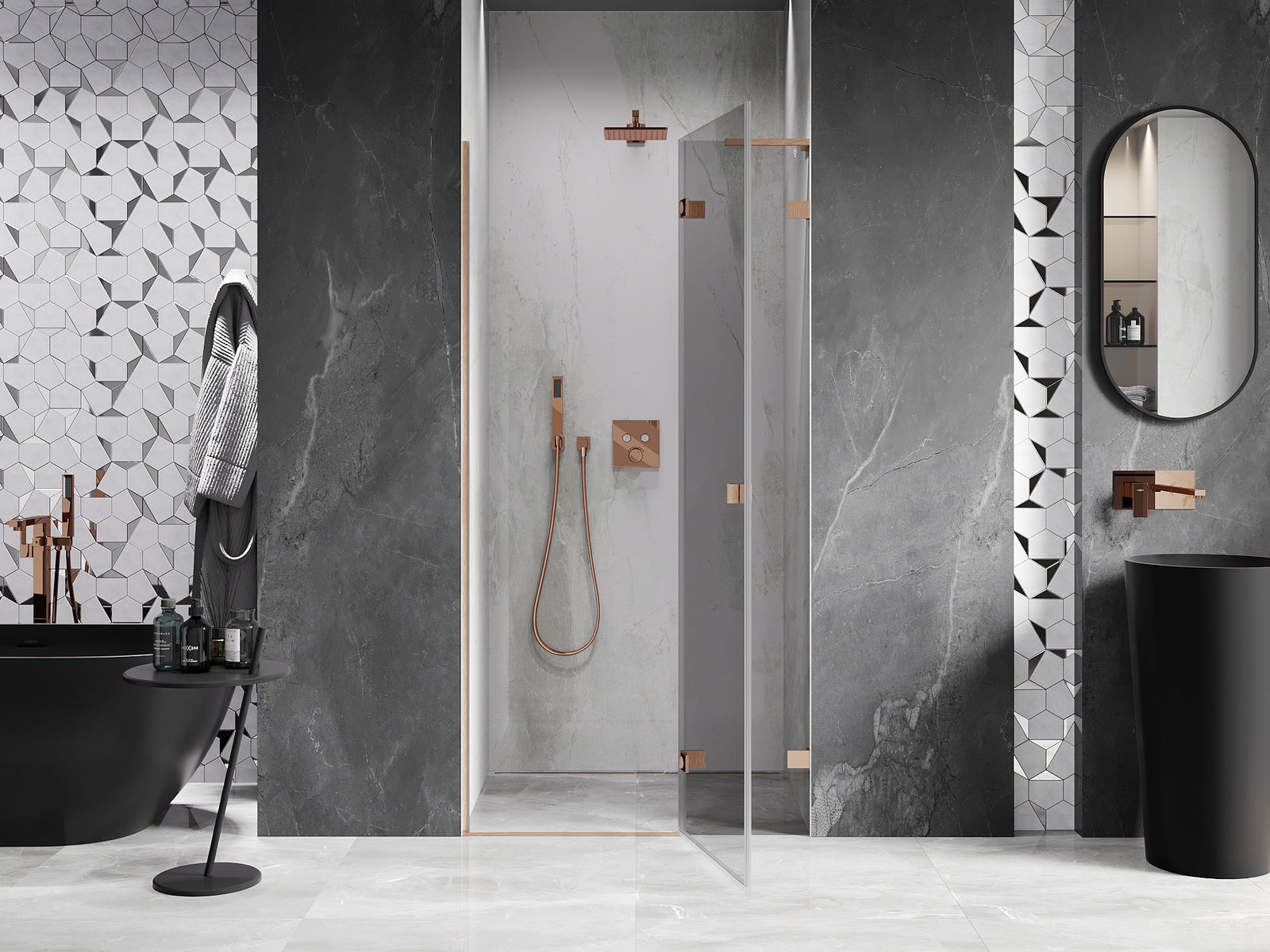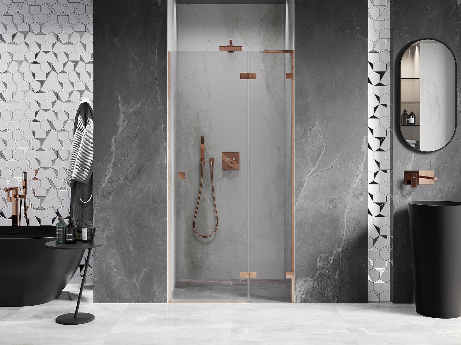 Mexen Lunar L varstomosios dušo durys dešinės 90 cm, skaidrios, šlifuotas varis - 834L-090-000-65-00-P