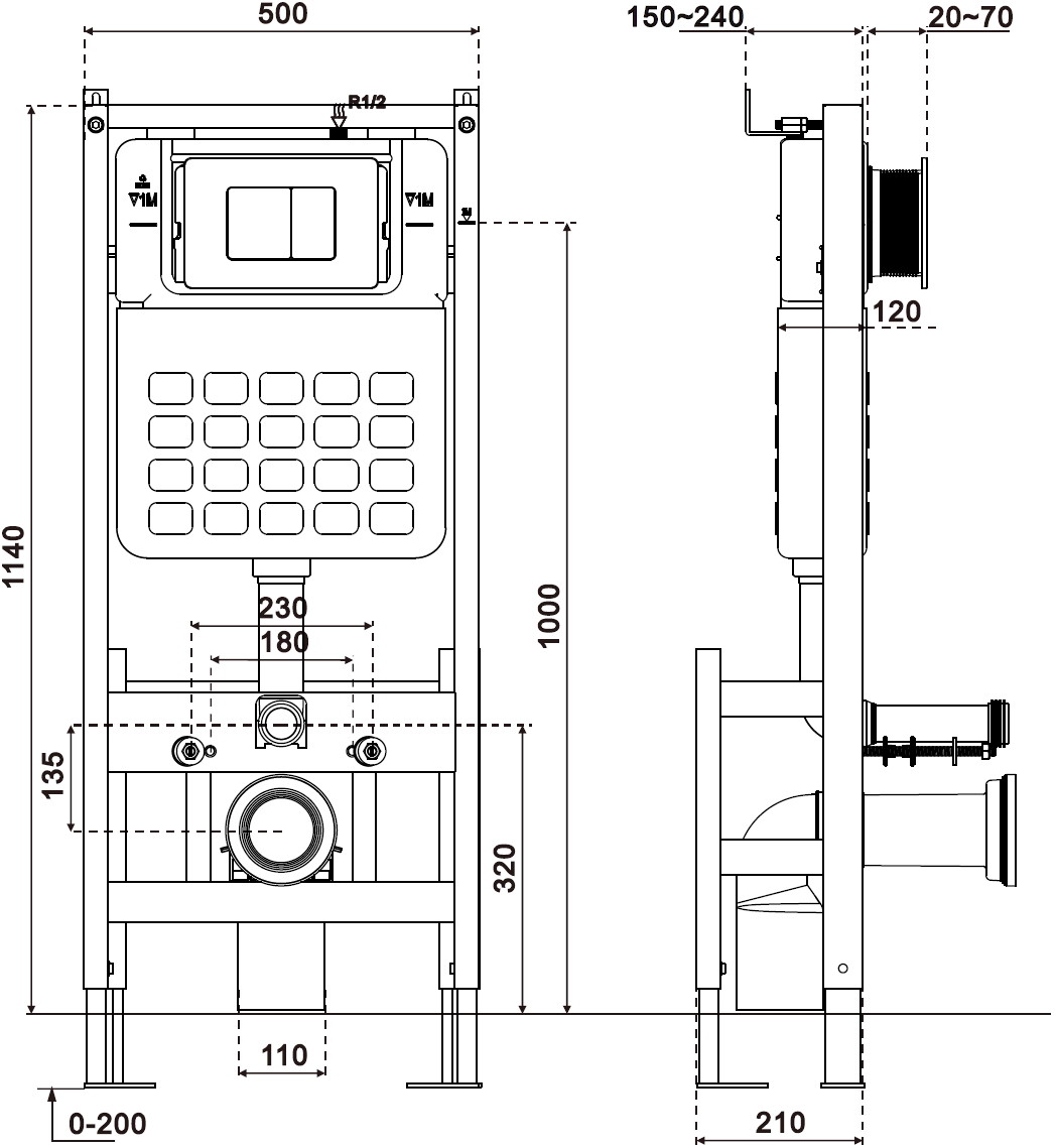 „Mexen Tex F“ yra patikimas laisvai stovintis įrėmintas pakabinamas tualetas, kurio aukštis yra 114 cm, o plotis - 50 cm. Nuleidimo mechanizmas leidžia efektyviai naudoti vandenį su pasirinkimu tarp 6/9 L arba 3/4,5 L. Skirtas tvirtinimui prie pilnos sienos arba gipso kartono, idealus pakabinamiems tualetams su 18 arba 23 cm skersmens skylių tarpais. Cinkuotos kojos ir atramos užtikrina tvirtumą ir reguliavimą, o bakas su izoliacija apsaugo nuo rasos susidarymo. Suderinamas su Mexen Tex serijos mygtukais.