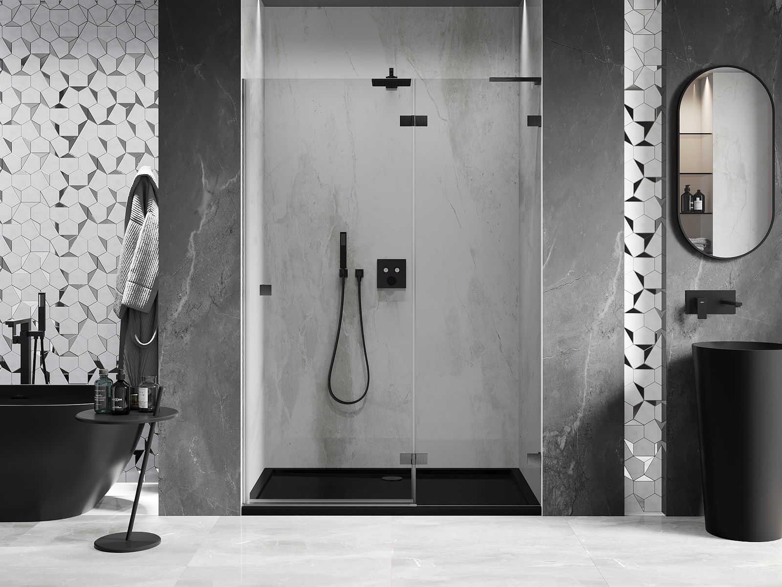 Produktą, atsižvelgiant į poreikius, galima sumontuoti tiek ant dušo padėklo, tiek tiesiogiai ant grindų. Universalus montavimo būdas leidžia pritaikyti produktą įvairių tipų vonios kambariams ir erdvės konfigūracijoms.