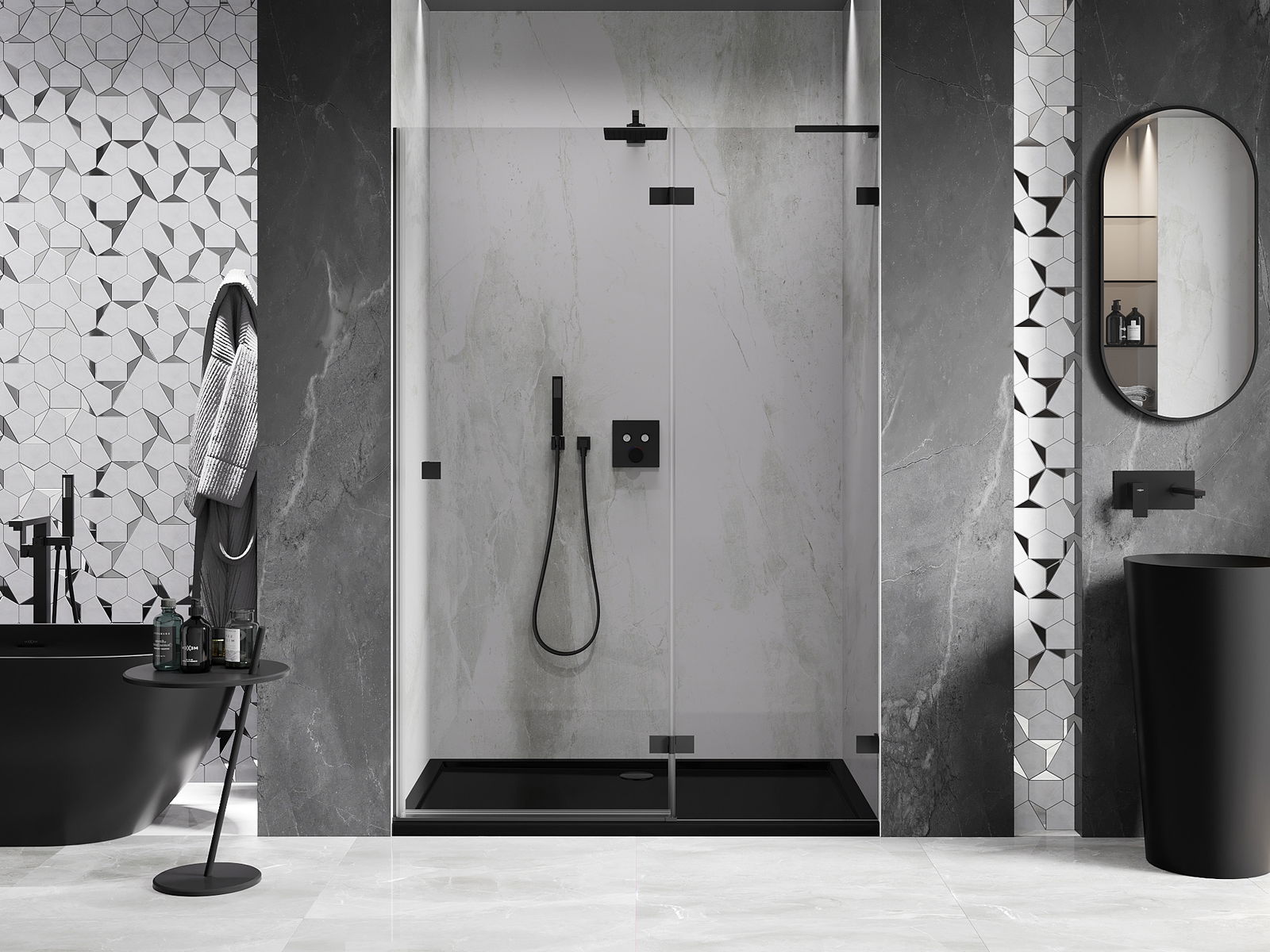 Mexen Lunar L dešinės pusės dušo durys, 130 cm, skaidrios, juodos - 834L-130-000-70-00-P