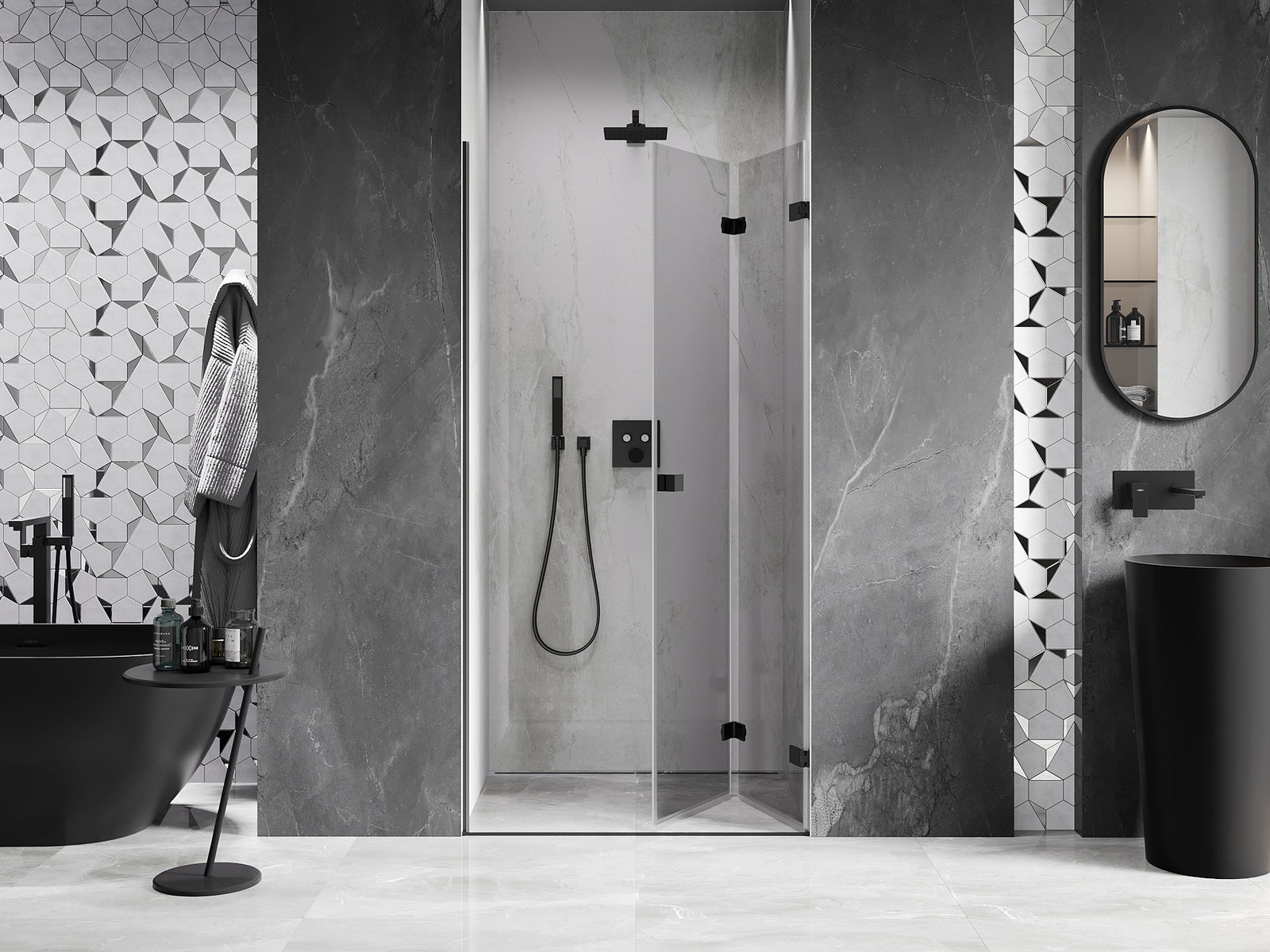 Mexen Lunar-F sulankstomos dešinės pusės dušo durys 95 cm, skaidrios, juodos - 836-095-000-70-00-P