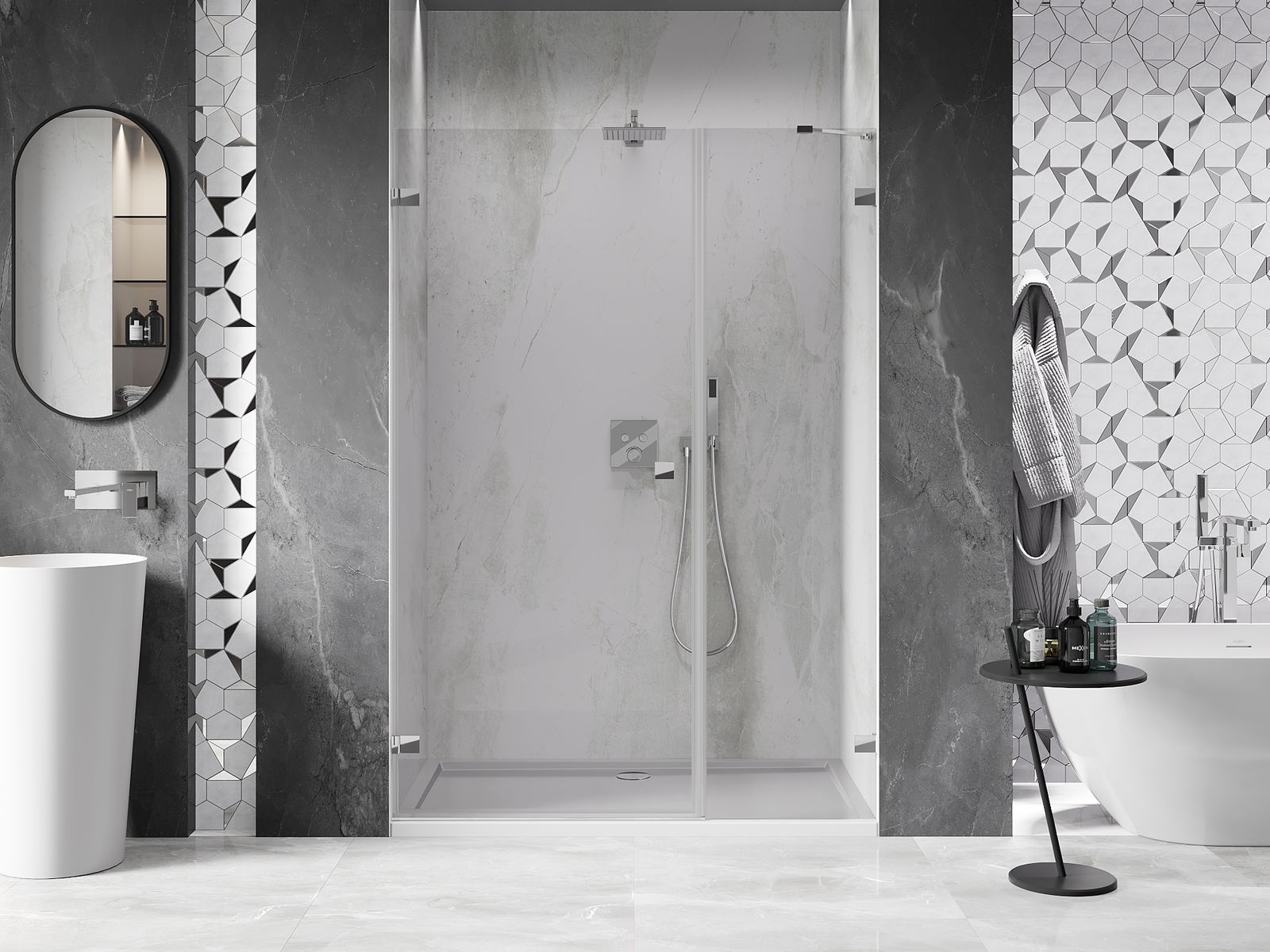 Produktą, atsižvelgiant į poreikius, galima sumontuoti tiek ant dušo padėklo, tiek tiesiogiai ant grindų. Universalus montavimo būdas leidžia pritaikyti produktą įvairių tipų vonios kambariams ir erdvės konfigūracijoms.