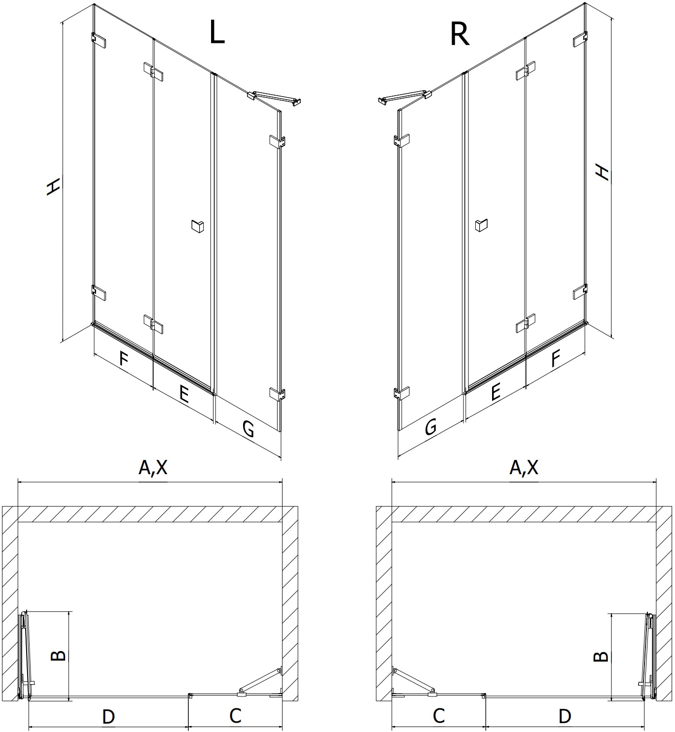 Galimybė sulenkti duris, tiek į išorę, tiek į vidų, leidžia gauti daugiau erdvės nenaudojant dušo. Tai yra idealus sprendimas mažesnėms vonios kambariams, maksimaliai išnaudojantis turimą plotą.
