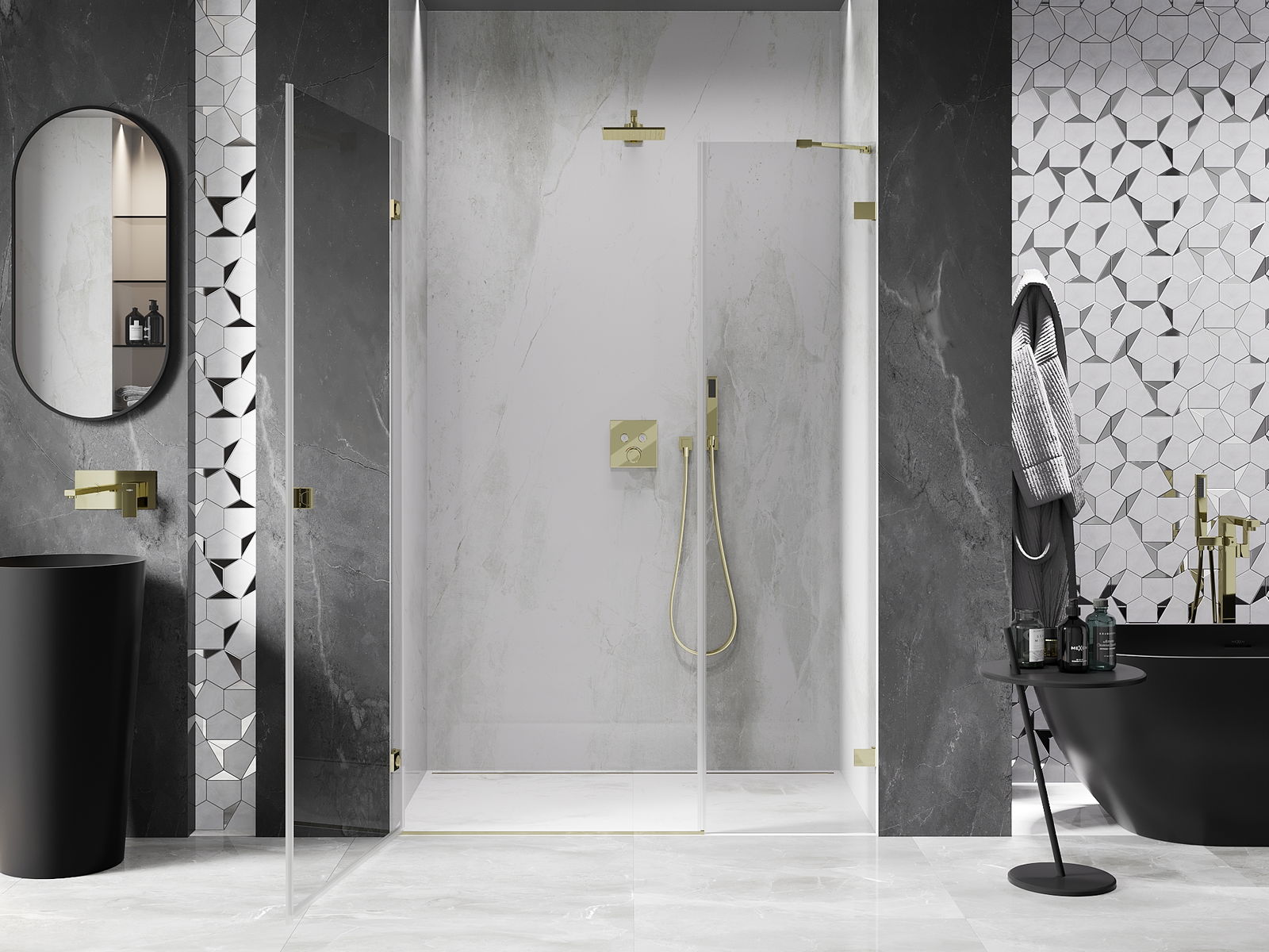 Produktą, atsižvelgiant į poreikius, galima sumontuoti tiek ant dušo padėklo, tiek tiesiogiai ant grindų. Universalus montavimo būdas leidžia pritaikyti produktą įvairių tipų vonios kambariams ir erdvės konfigūracijoms.