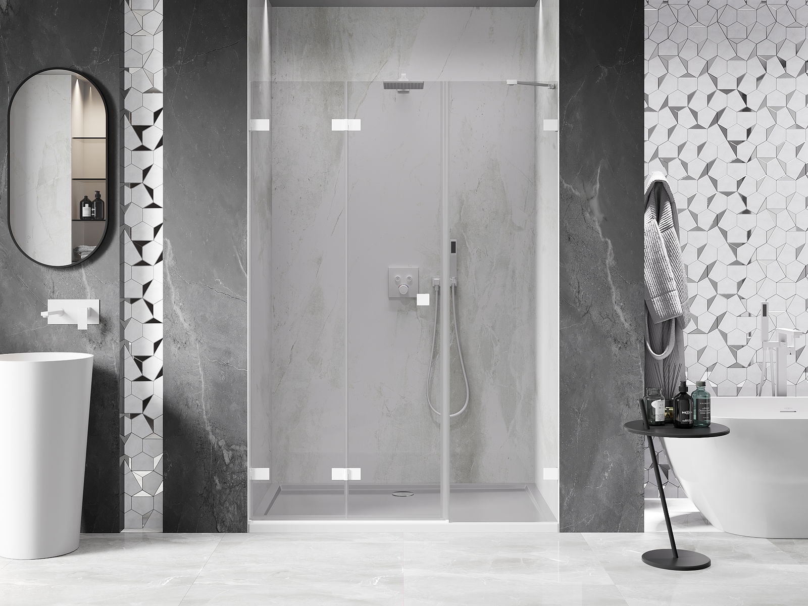 Mexen Lunar-F sulankstomos dušo durys kairės 145 cm, permatomos, baltos - 836S-145-050-20-00-L